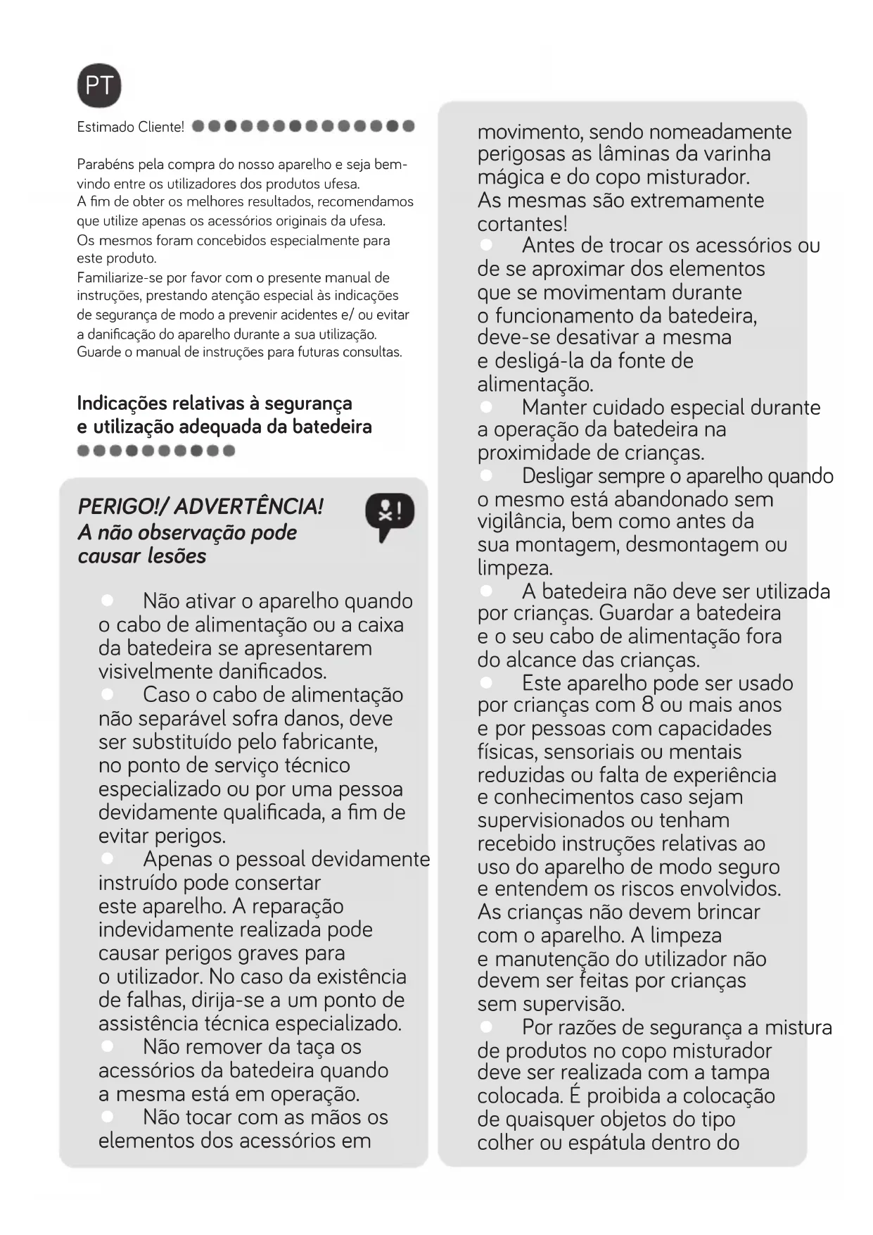 Guarde o manual de instruções para futuras consultas.