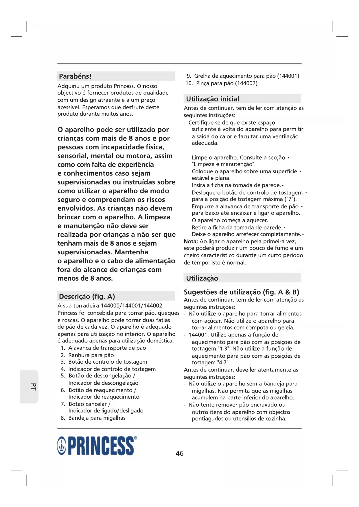 Encontre gratuitamente o manual do aparelho Compact4All Toaster 144002 PRINCESS em formato PDF.