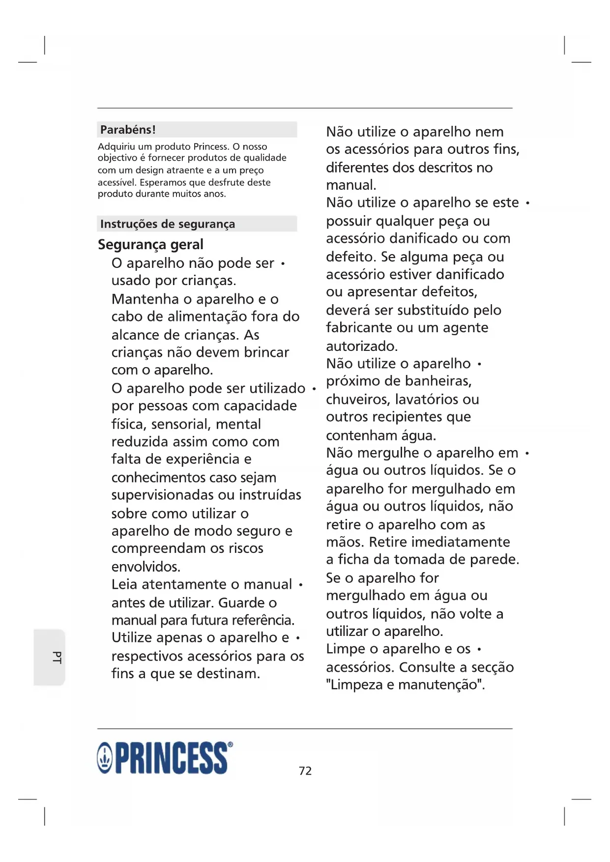 Adquiriu um produto Princess. O nosso