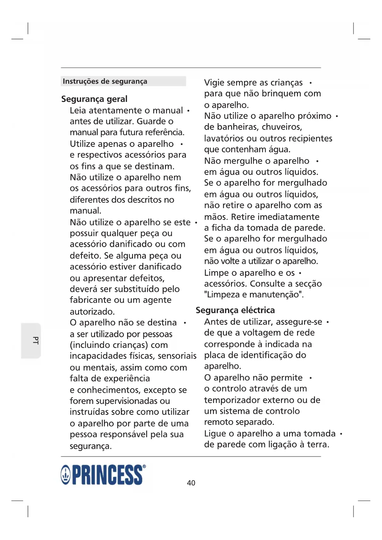 MANUAL DE UTILIZADOR Piano Blender 10Speed PRINCESS
