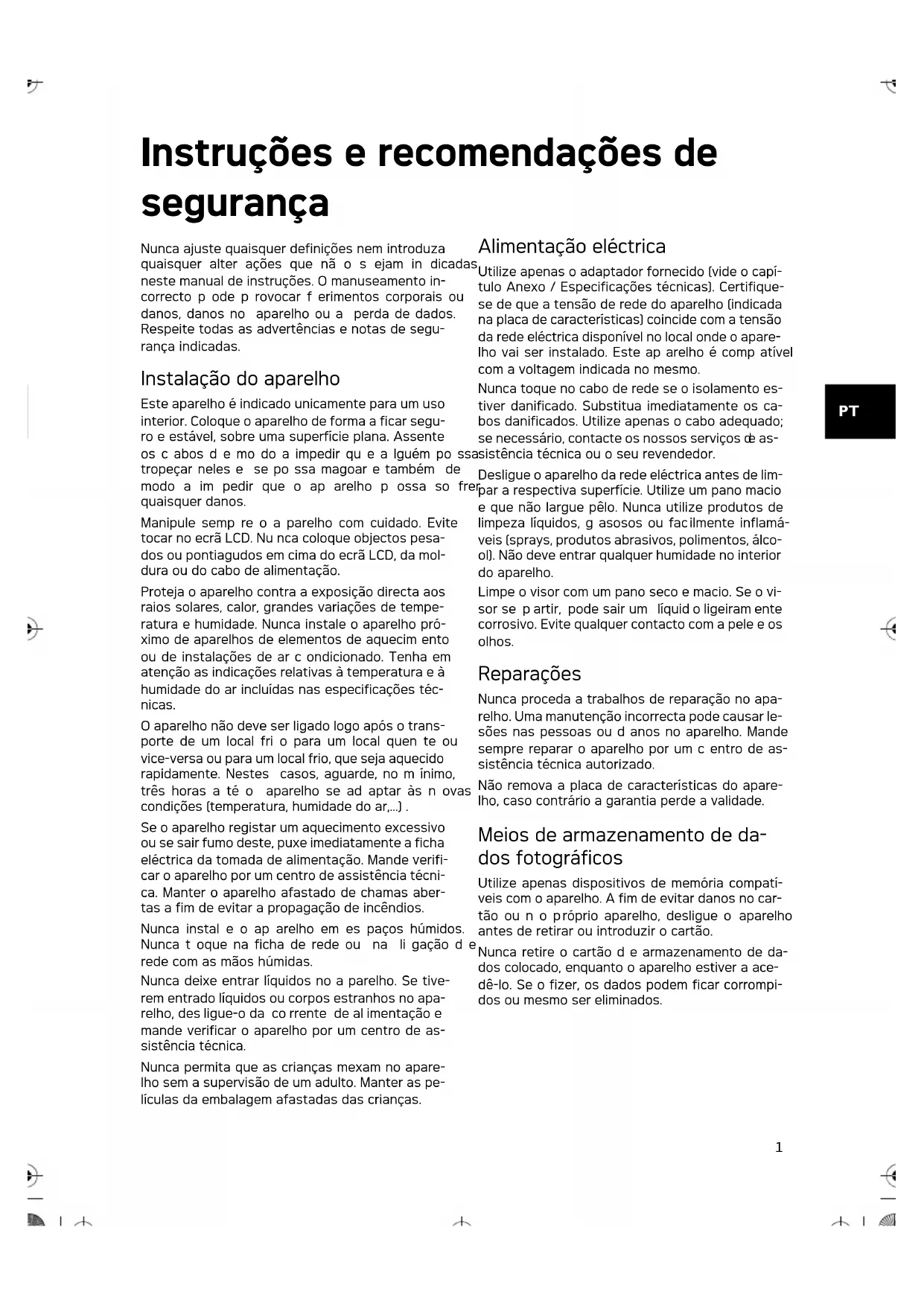 Nunca ajuste quaisquer definições nem introduza quaisquer alter ações que não o s ejam in dicadas neste manual de instruções. O manuseamento incorrecto pode provocar erimentos corporais ou danos, danos no aparelho ou a perda de dados. Respeite todas as advertências e notas de segurança indicadas.