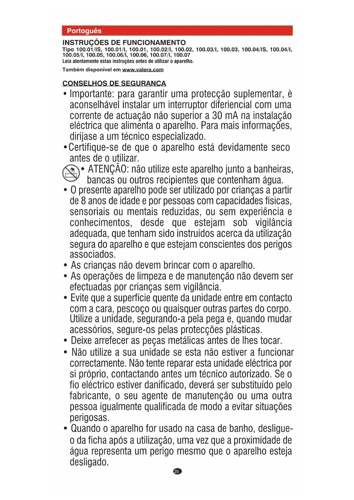 GARANTIA O fabricante VALERA garante o aparelho desde que