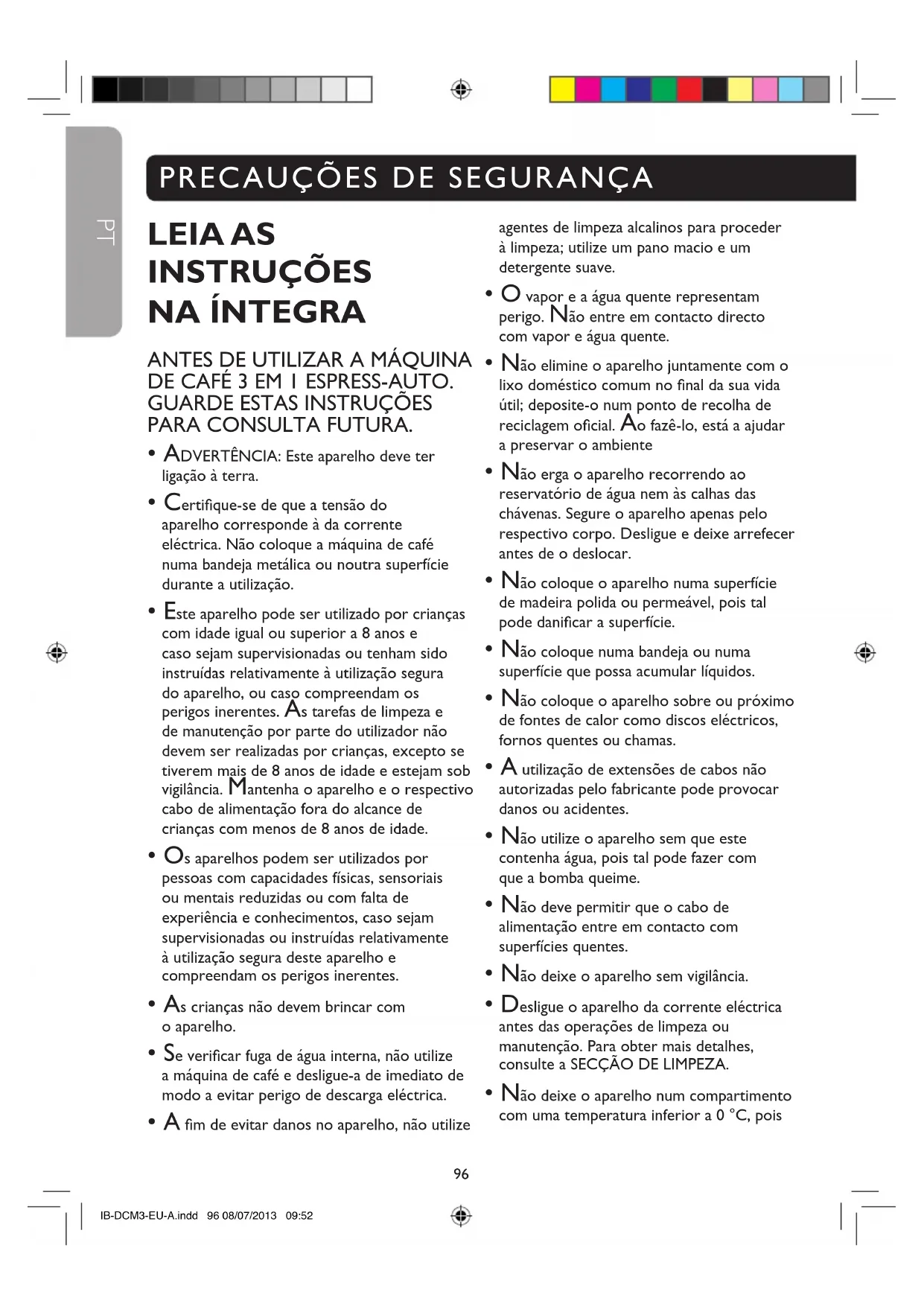 Máquina de café 3 em 1 Espress-auto Manual de instruções .............................................................96 IB-DCM3-EU-A.indd 2 08/07/2013 09:523