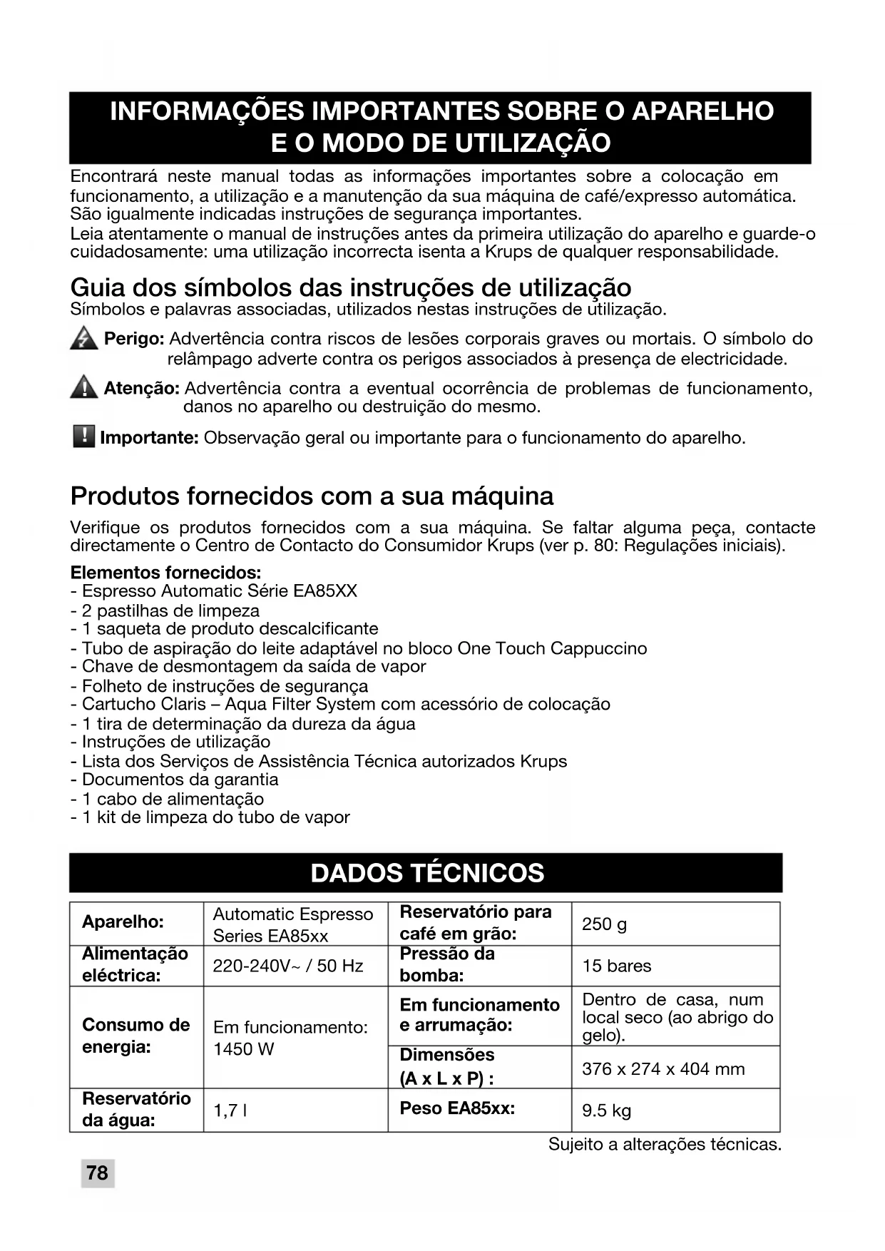 Parabéns pela aquisição da sua Espresso Automatic Série EA85XX. A sua máquina