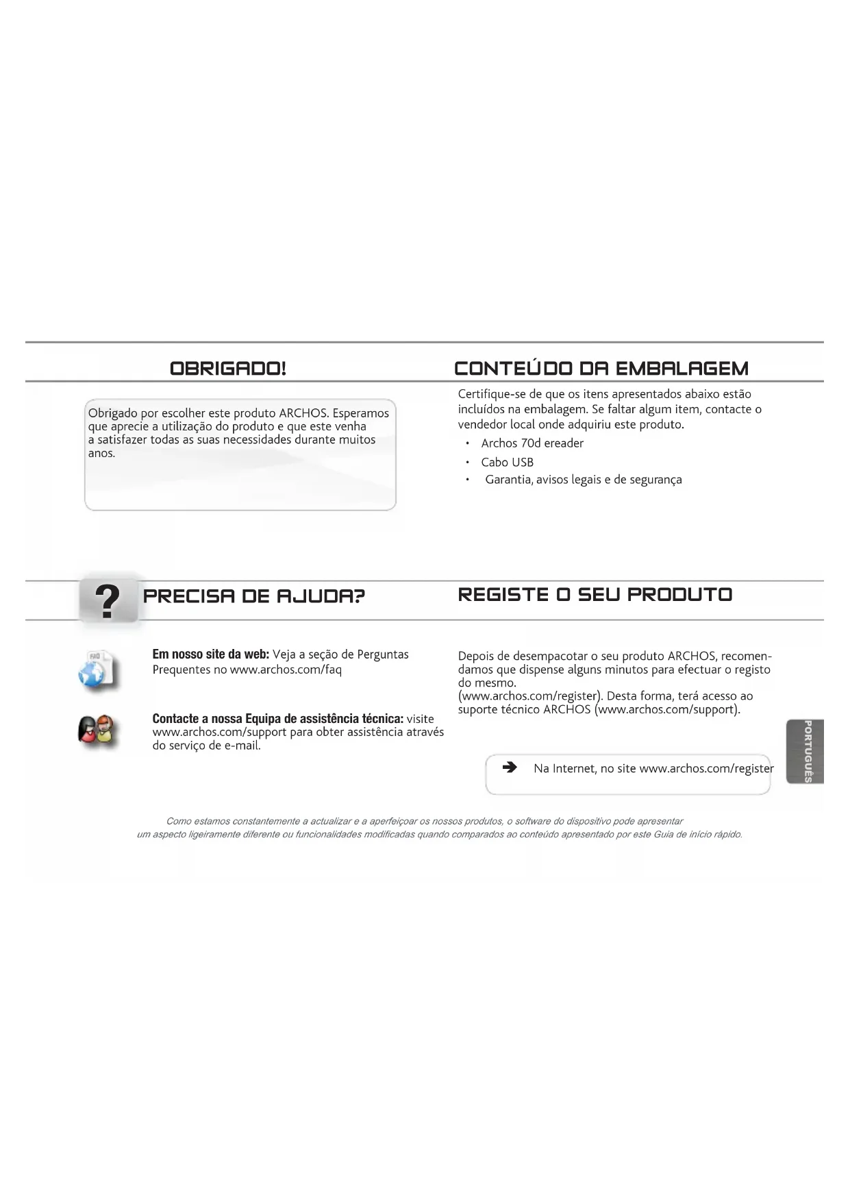 REGISTE O SEU PRODUTO Como estamos constantemente a actualizar e a aperfeiçoar os nossos produtos, o software do dispositivo pode apresentar