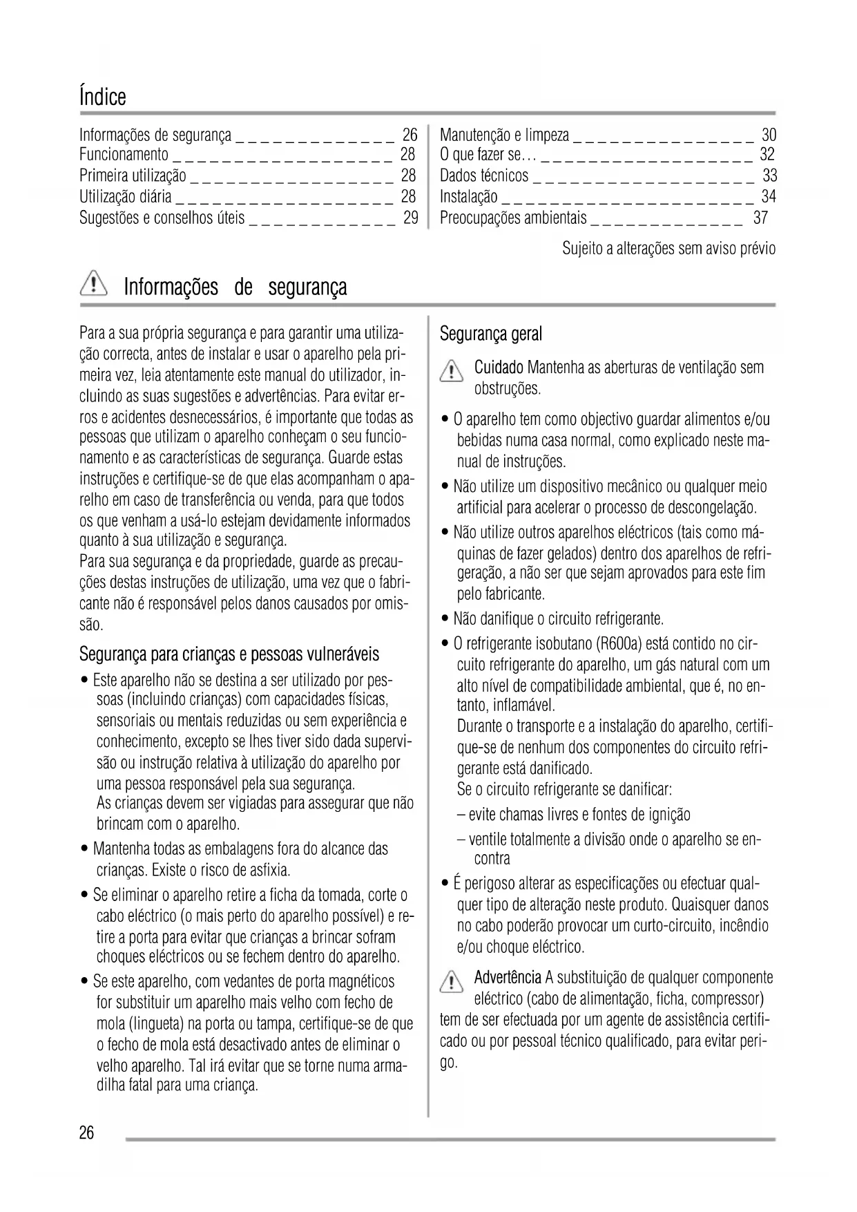 Informações de segurança _ _ _ _ _ _ _ _ _ _ _ _ _ 26