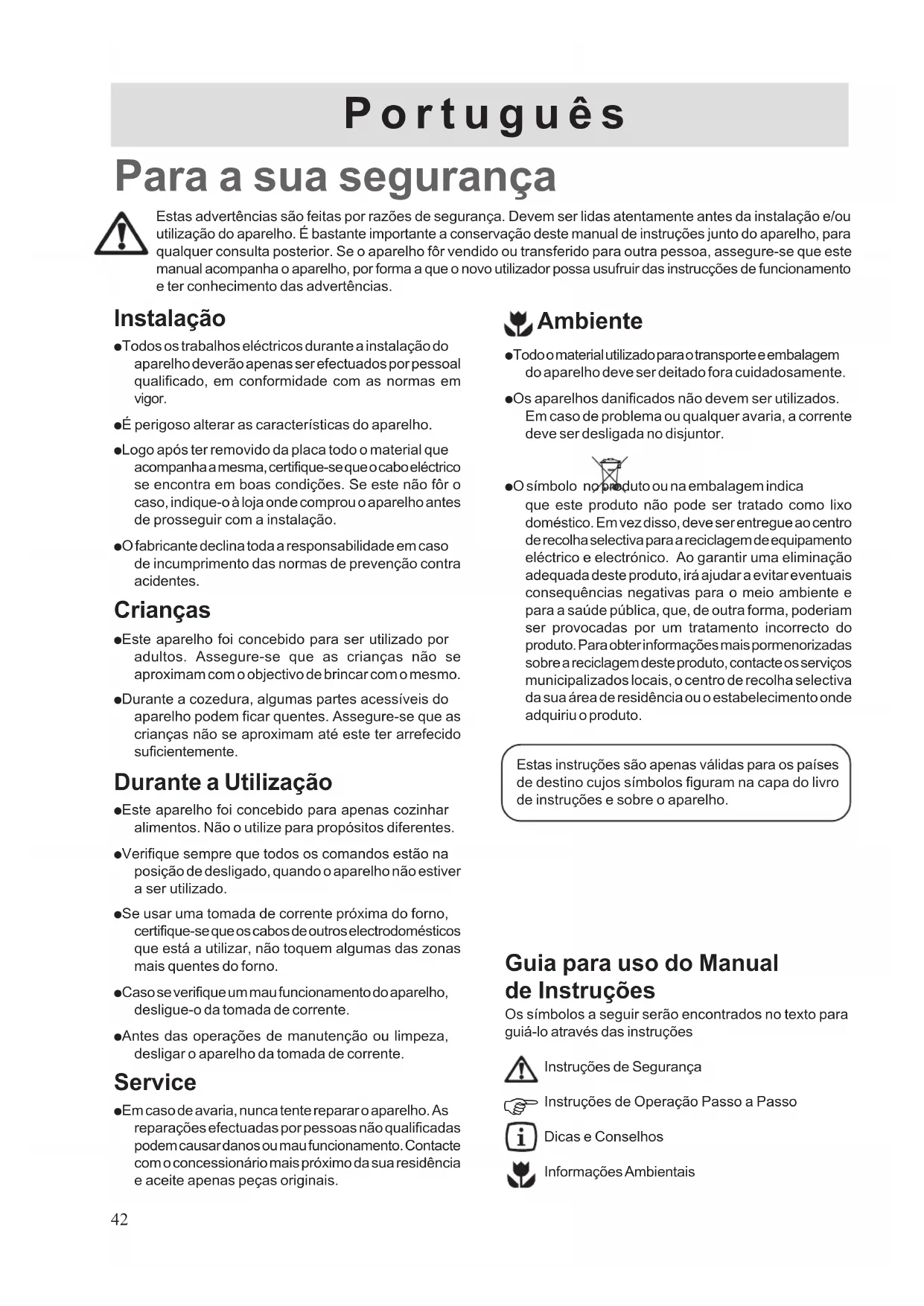 Estas instruções são apenas válidas para os países