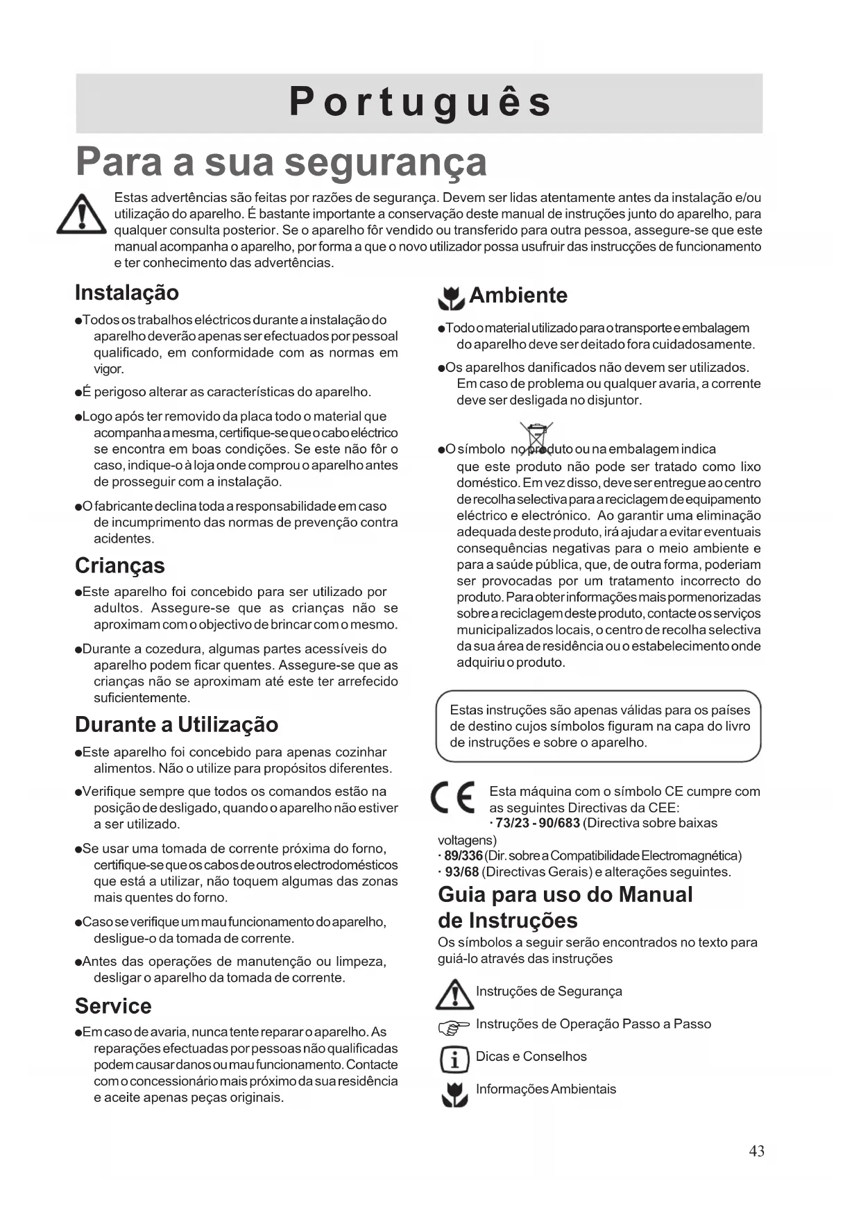 utilização do aparelho. É bastante importante a conservação deste manual de instruções junto do aparelho, para
