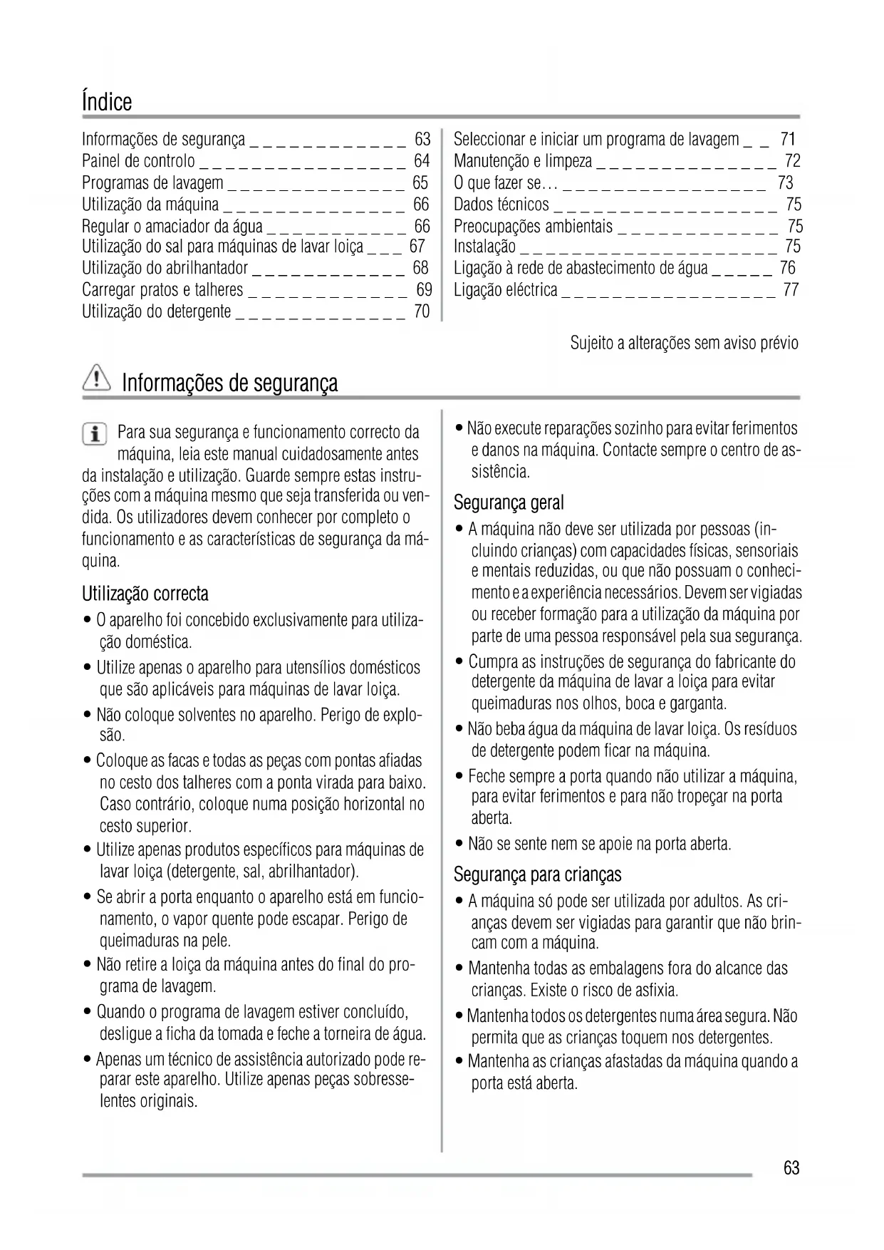 Informações de segurança _ _ _ _ _ _ _ _ _ _ _ _ 63