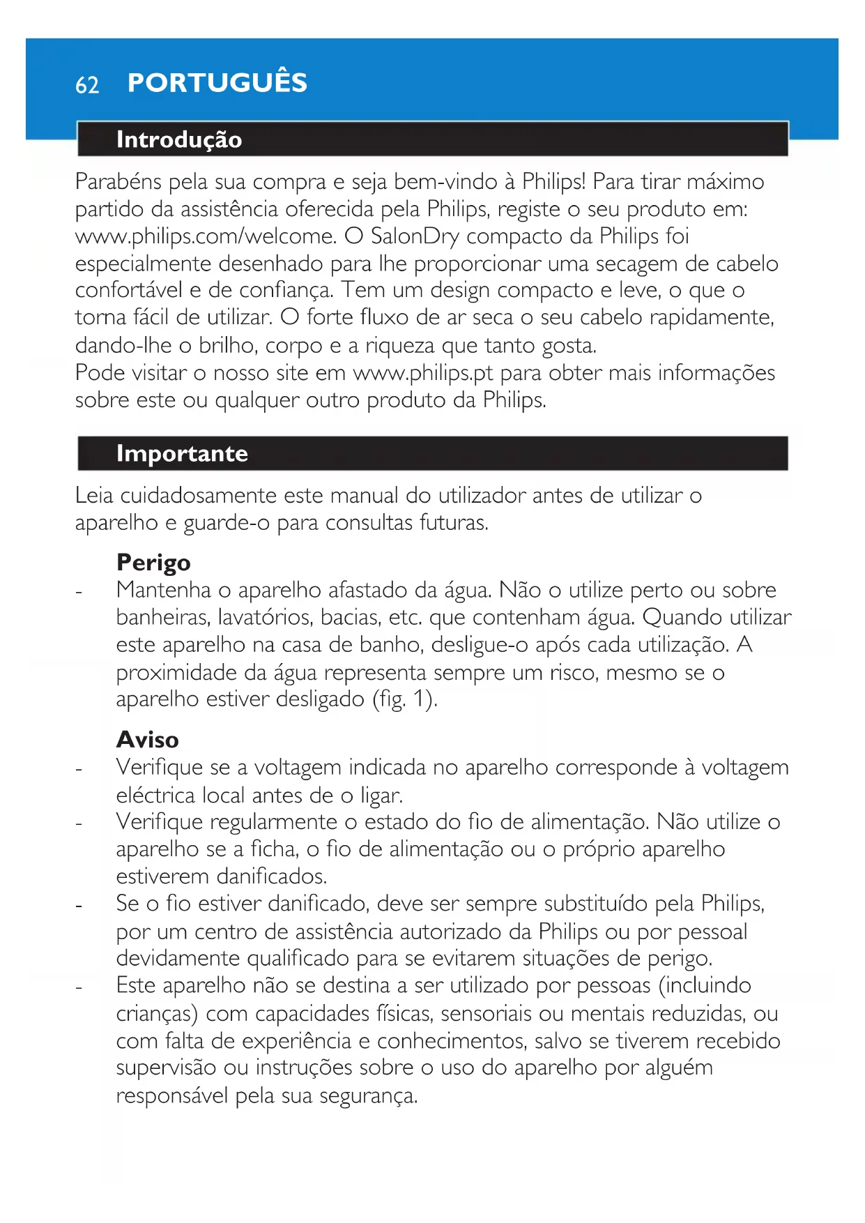 www.philips.com/welcome. O SalonDry compacto da Philips foi