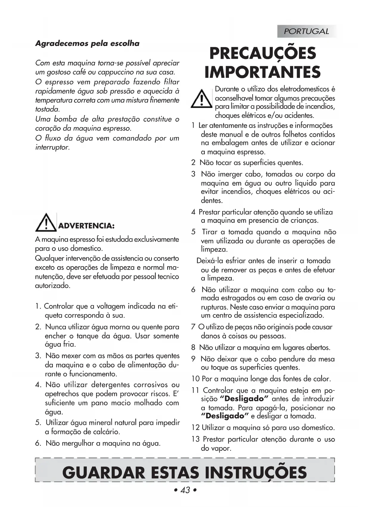 GUARDAR ESTAS INSTRUÇÕESPORTUGAL Preparação da maquina para café