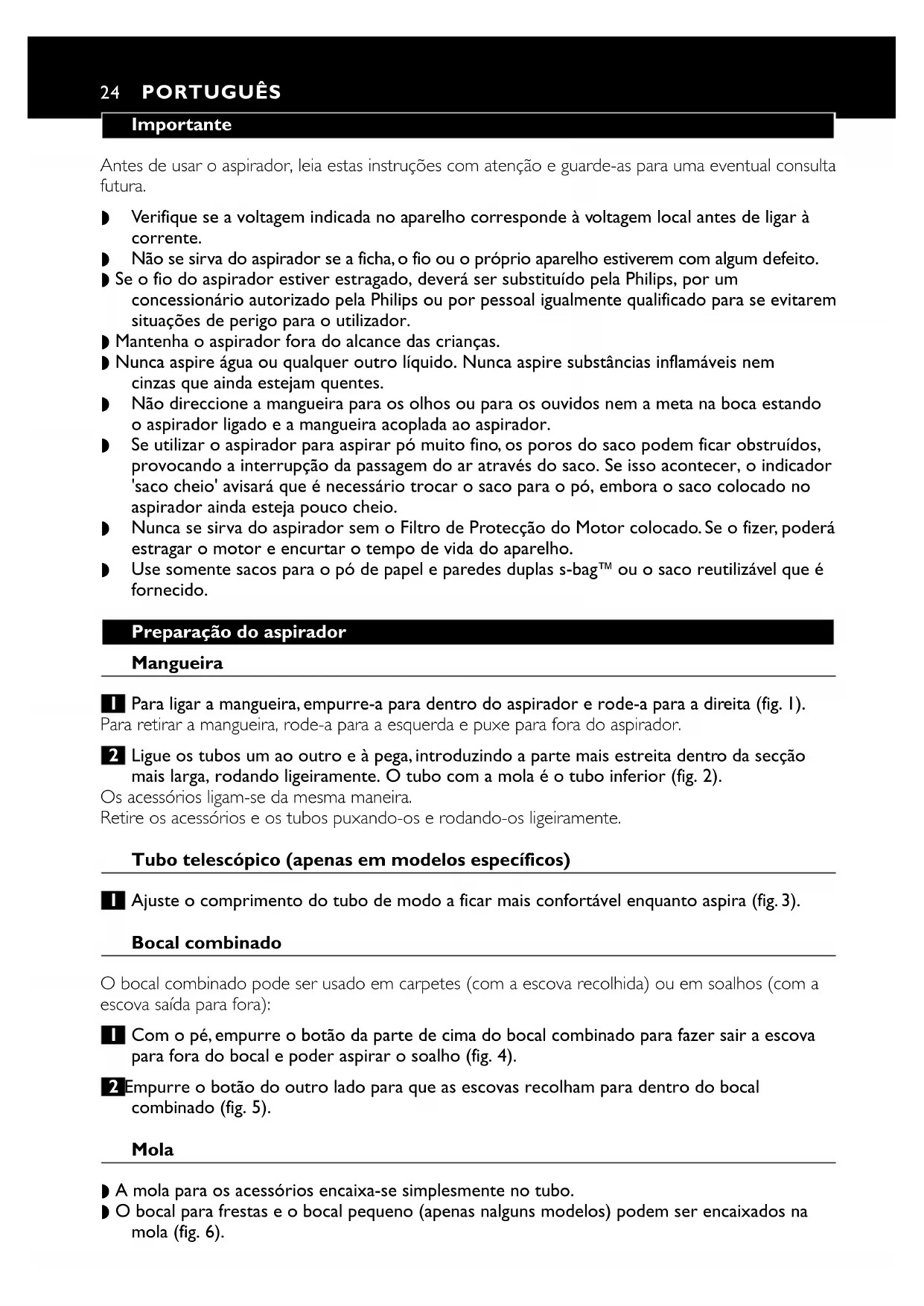 para fora do bocal e poder aspirar o soalho (fig. 4).