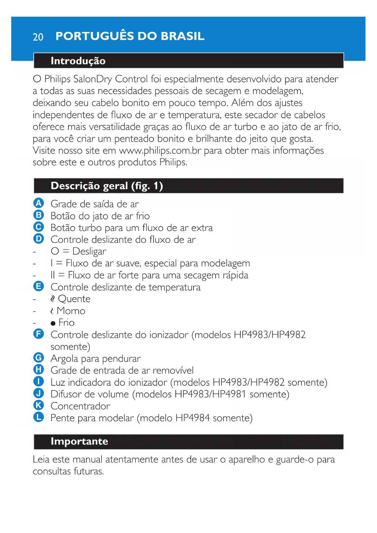 Encontre gratuitamente o manual do aparelho SalonDry Control HP4984 PHILIPS em formato PDF.