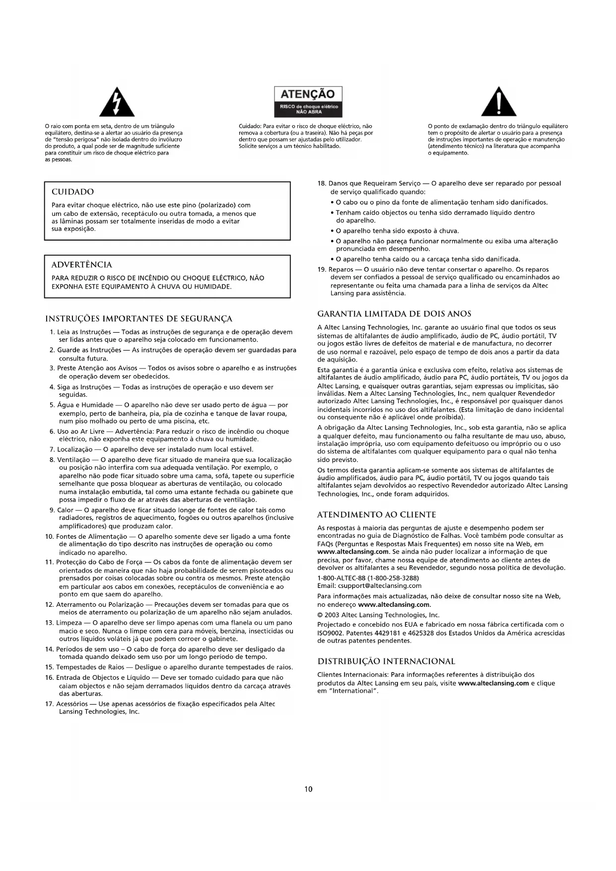 A obrigação da Altec Lansing Technologies, Inc., sob esta garantia, não se aplica