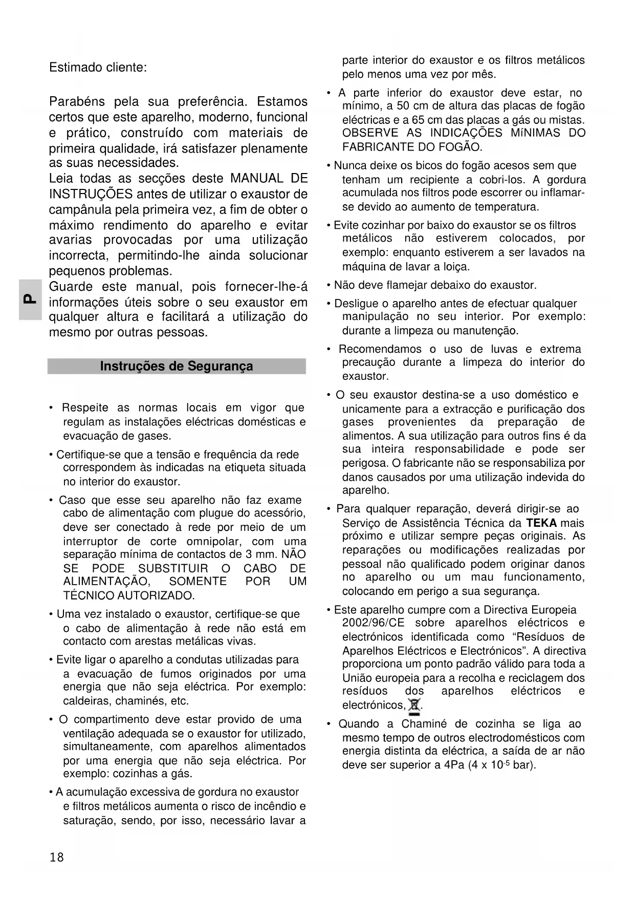 MANUAL DE UTILIZADOR DH 70 TEKA