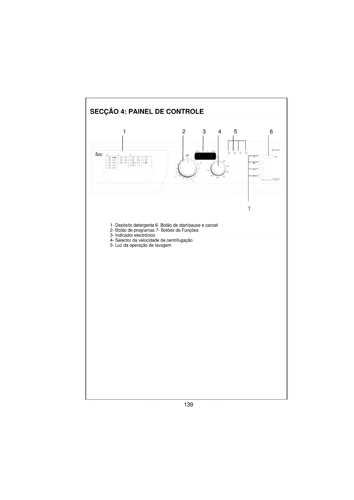 1- Depósito detergente 6- Botão de start/pause e cancel