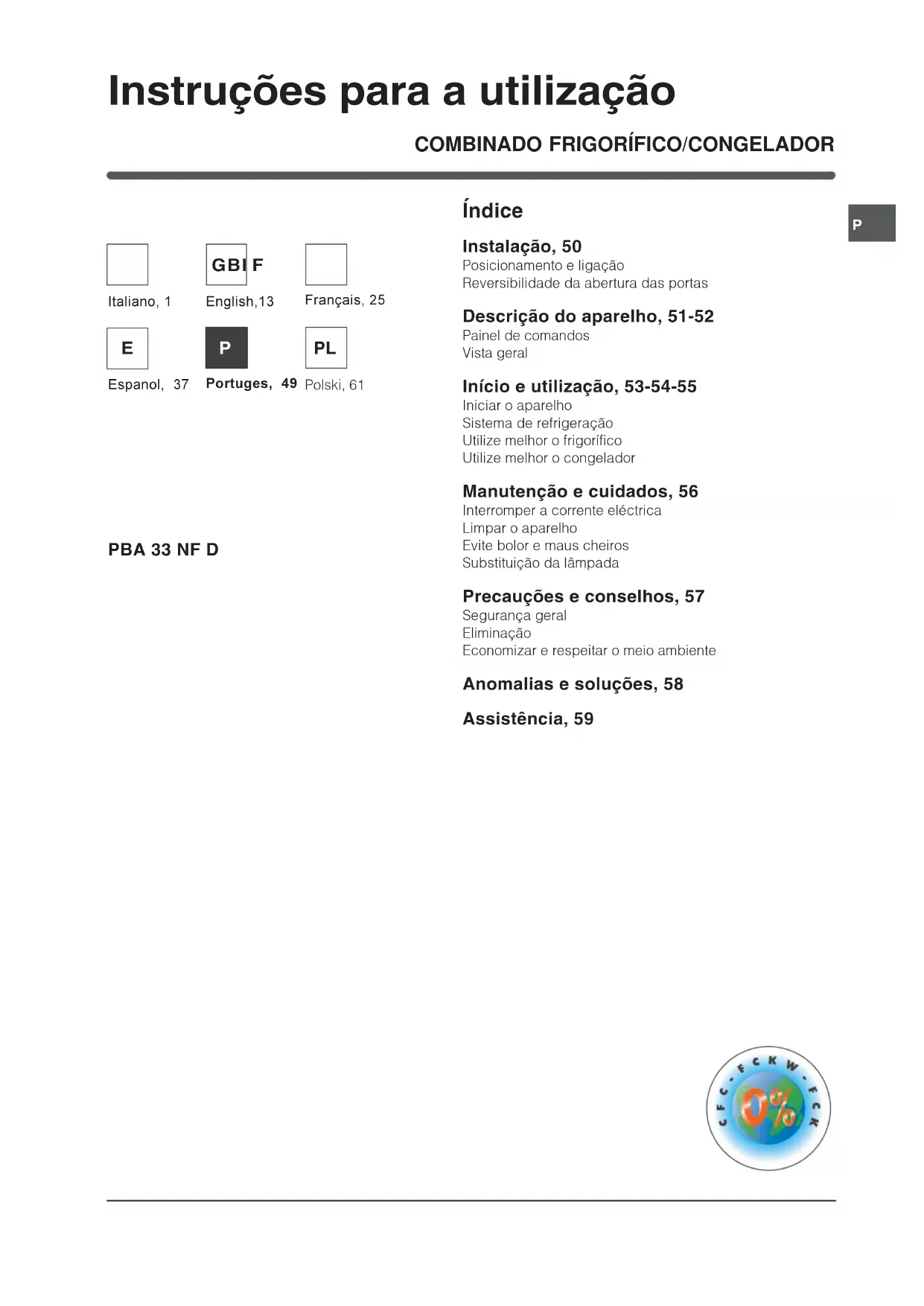 Combinado PBAA 33 NF D - Geladeira INDESIT - Manual de utilização gratuito