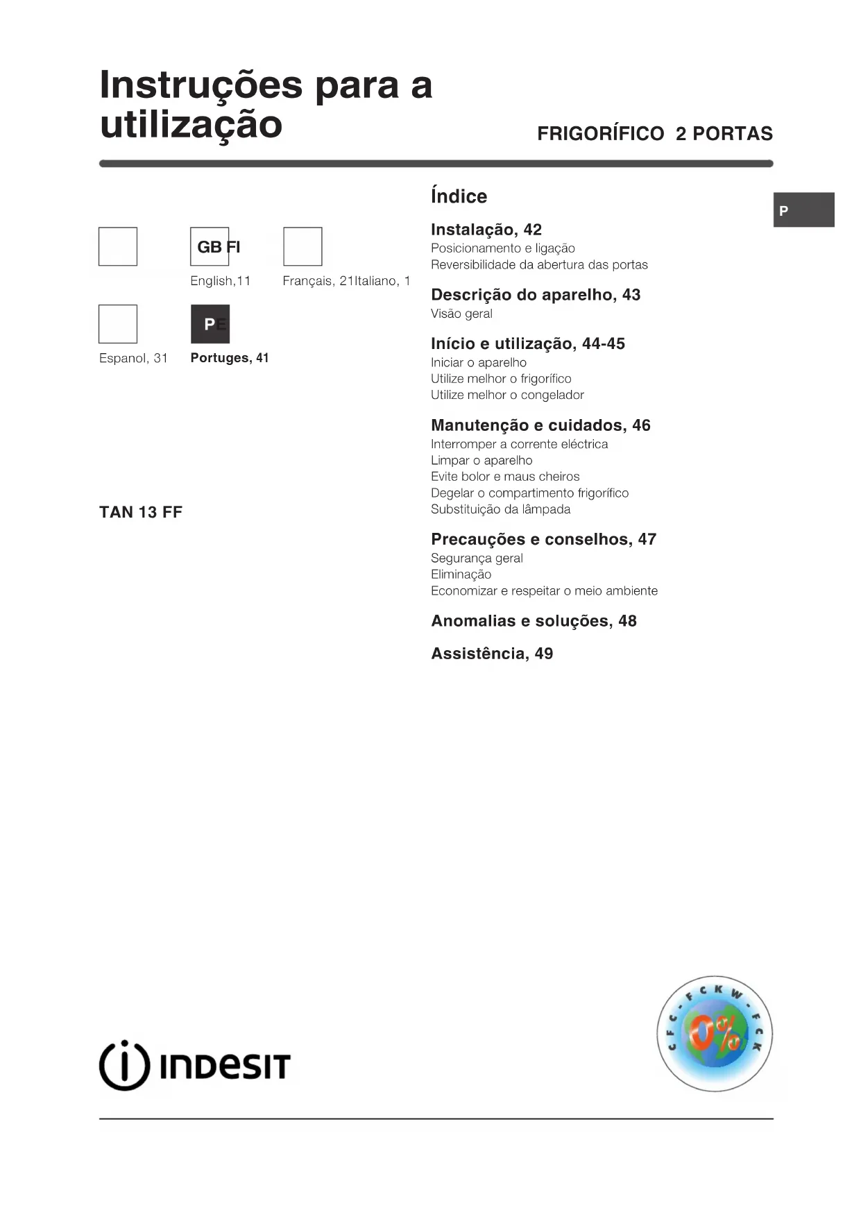 MANUAL DE UTILIZADOR Doble puerta TAN 13 FF INDESIT