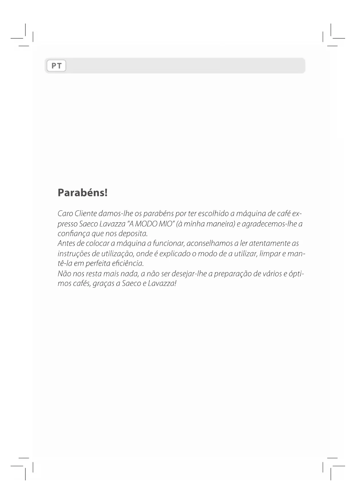 MANUAL DE UTILIZADOR Saeco Lavazza A Modo Mio Extra PHILIPS