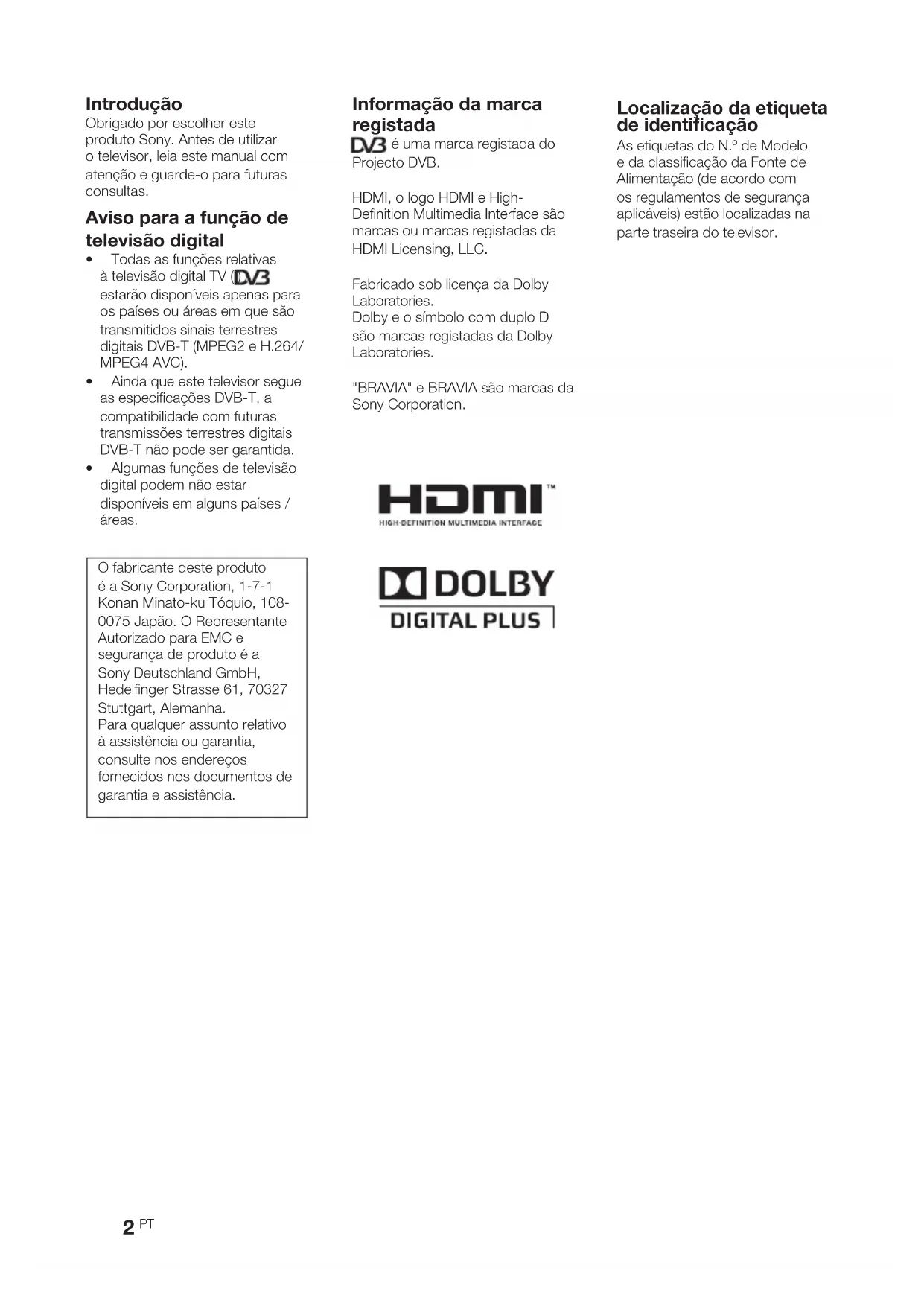 "BRAVIA" e BRAVIA são marcas da