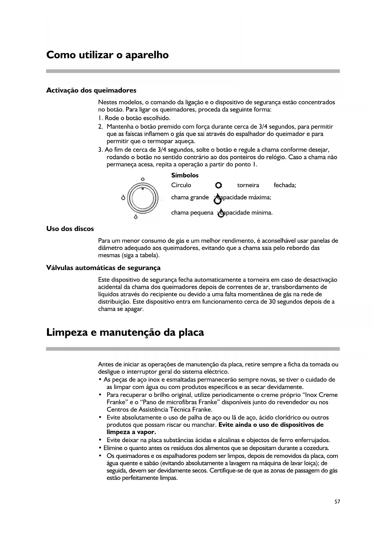 no botão. Para ligar os queimadores, proceda da seguinte forma: