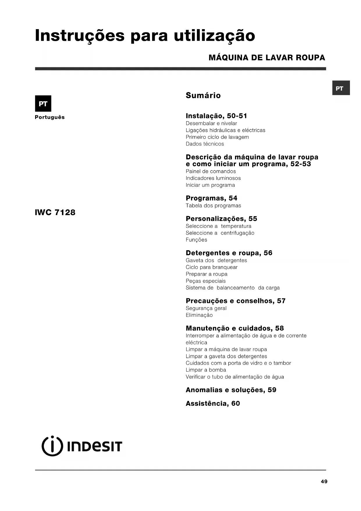 Encontre gratuitamente o manual do aparelho IWC7128WE INDESIT em formato PDF.
