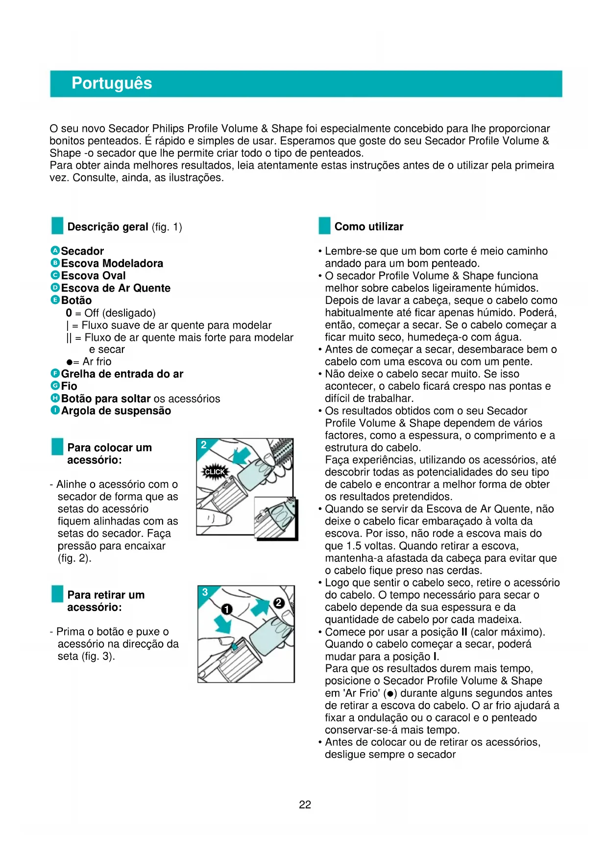 bonitos penteados. É rápido e simples de usar. Esperamos que goste do seu Secador Profile Volume &