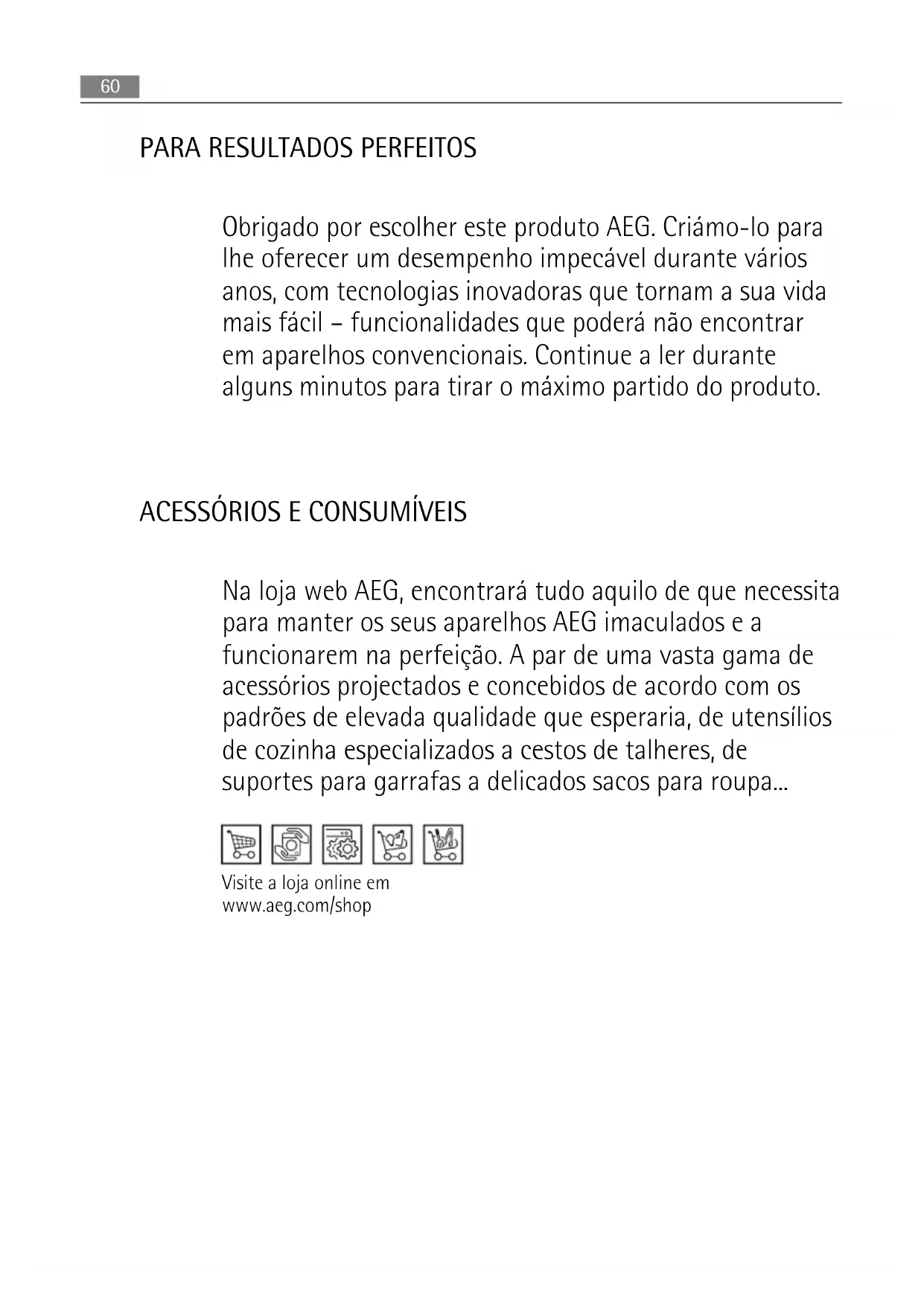 59PARA RESULTADOS PERFEITOS Obrigado por escolher este produto AEG. Criámo-lo para