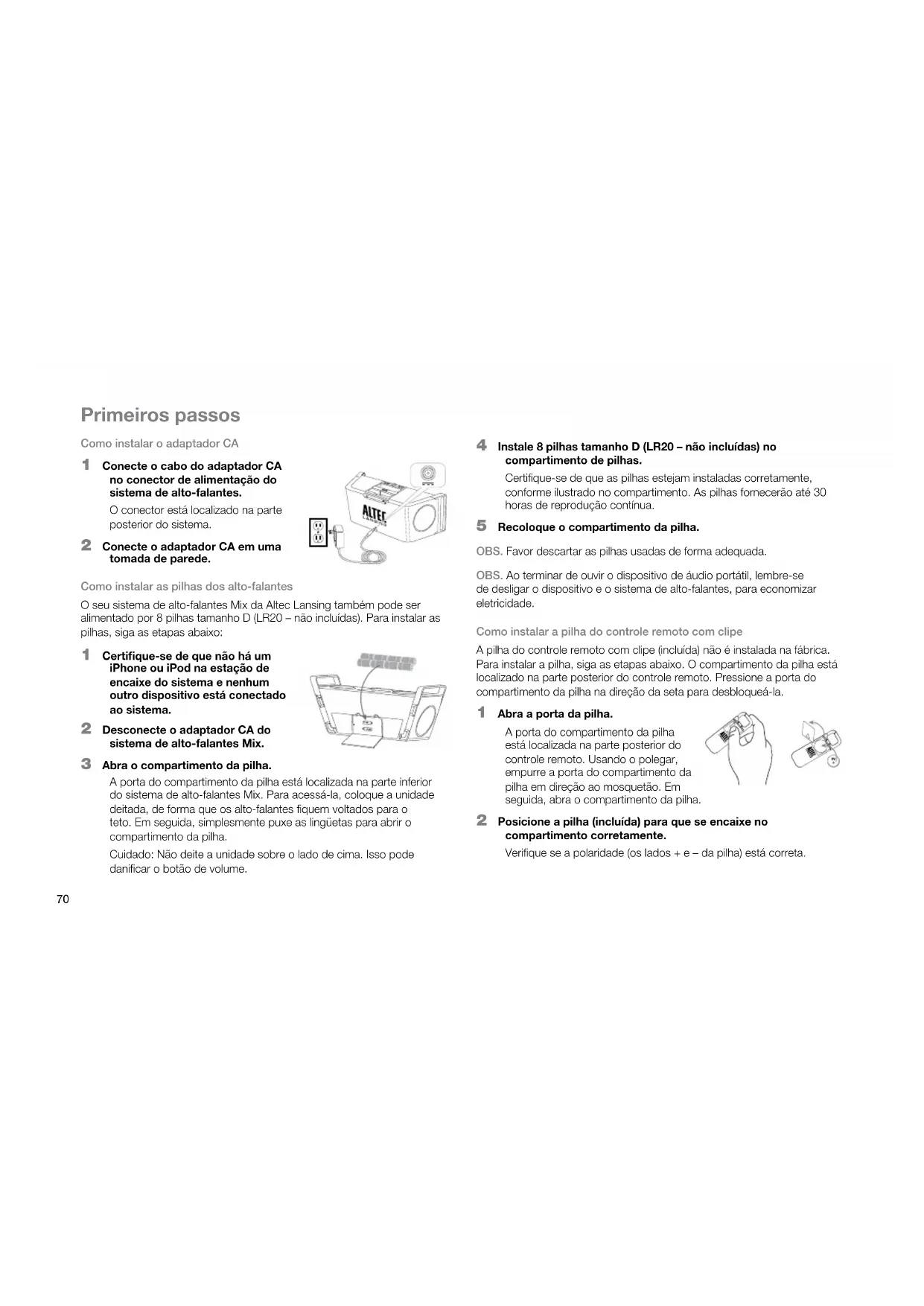 manual, você poderá fazer download no site www.alteclansing.com.) Além disso, danos