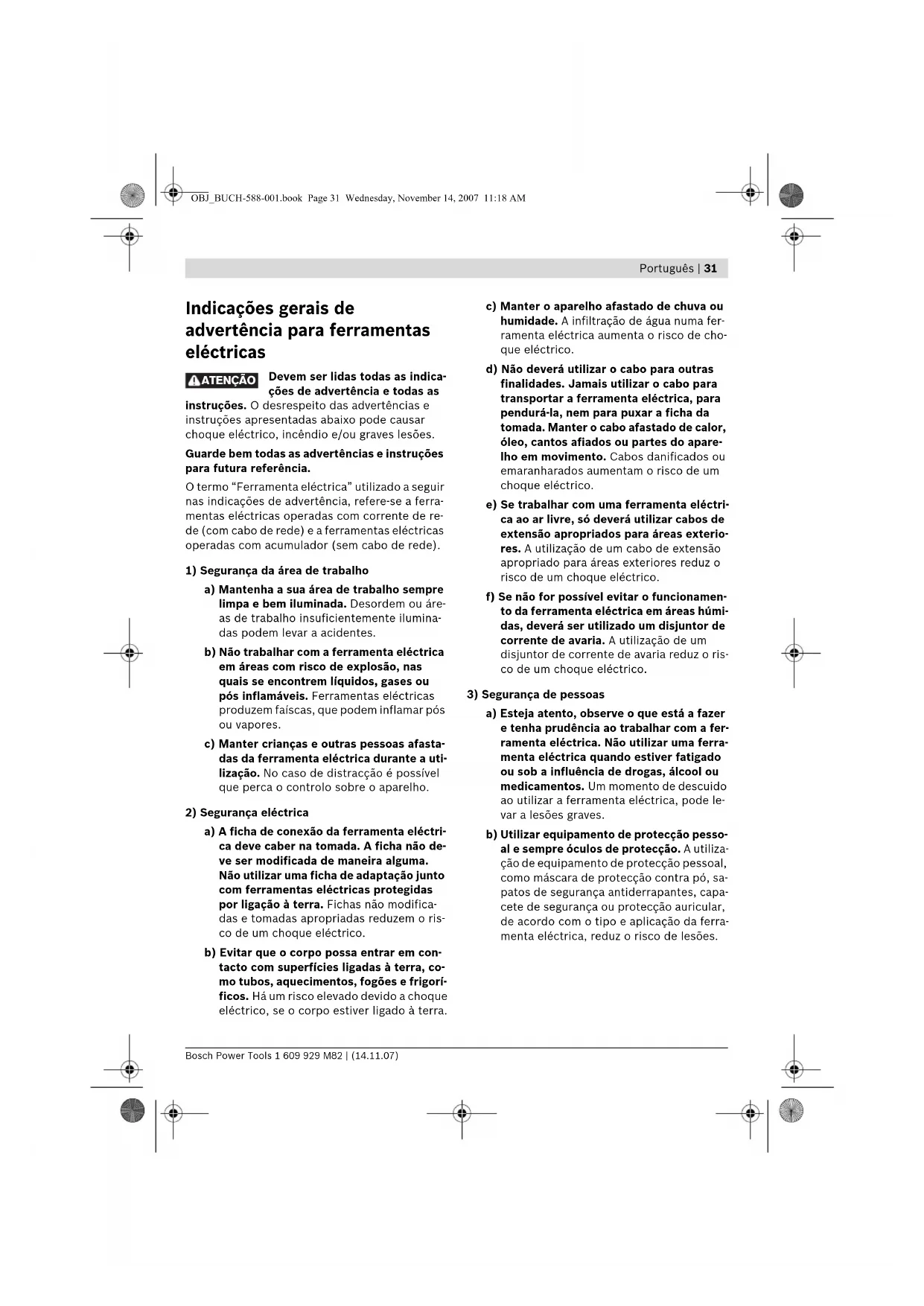 ATENÇÃO OBJ_BUCH-588-001.book Page 31 Wednesday, November 14, 2007 11:18 AM1 609 929 M82 | (14.11.07) Bosch Power Tools