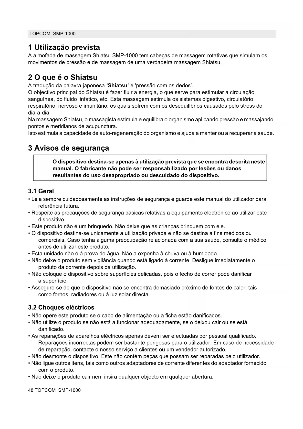 3.3 Precauções relacionadas com a utilização da almofada de massagem