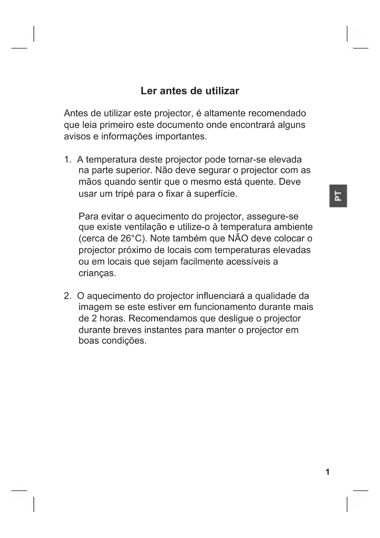 1. A temperatura deste projector pode tornar-se elevada