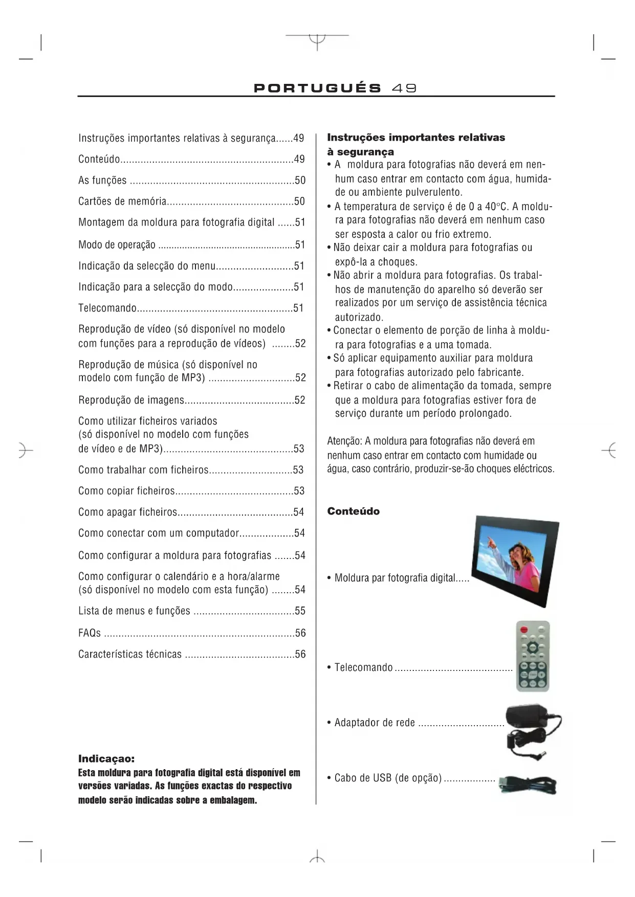 modelo com função de MP3) 52