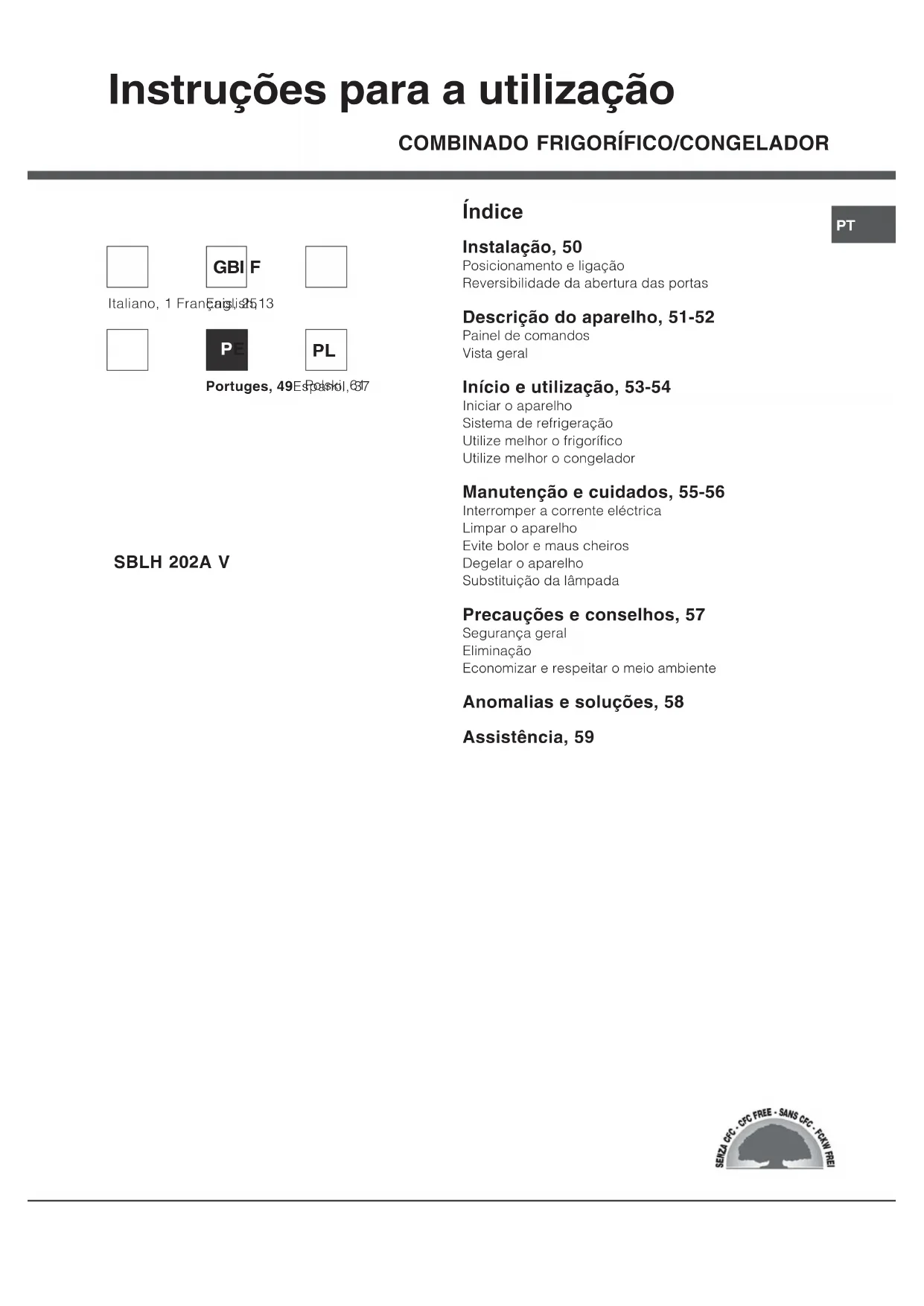 SBLH 202A V - Geladeira HOTPOINT - Manual de utilização gratuito