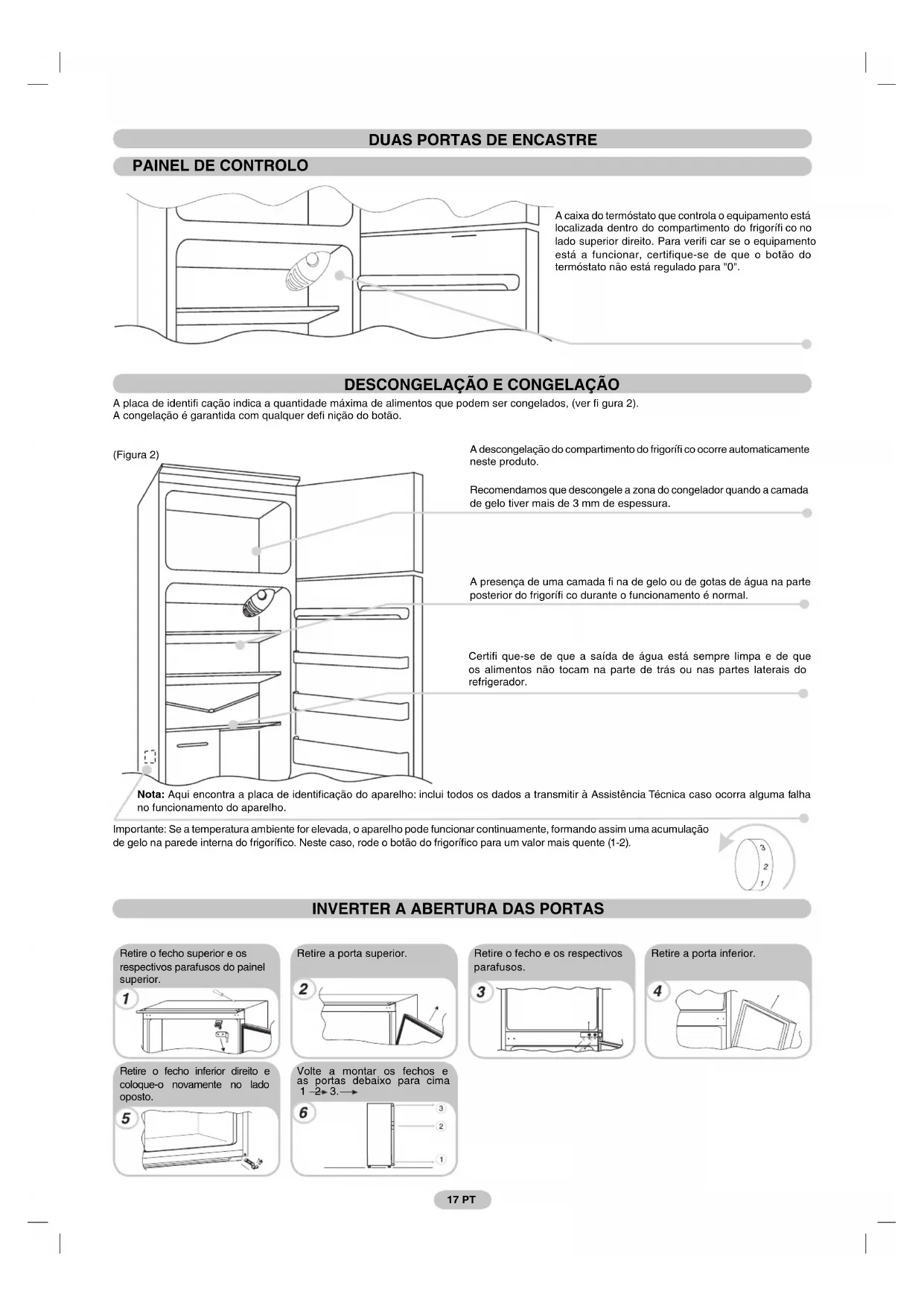 DESCONGELAÇÃO E CONGELAÇÃO A placa de identifi cação indica a quantidade máxima de alimentos que podem ser congelados, (ver fi gura 2).