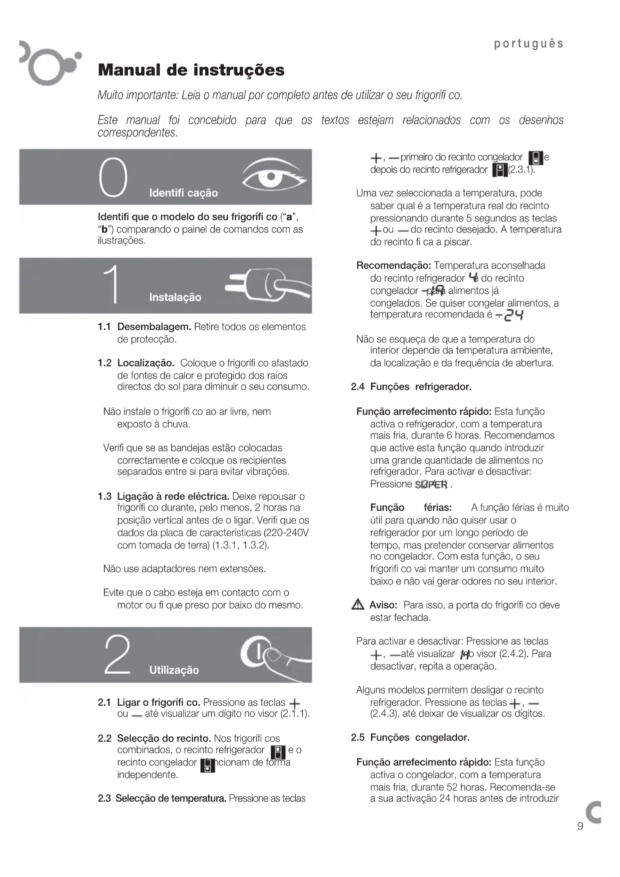 Muito importante: Leia o manual por completo antes de utilizar o seu frigorífi co.