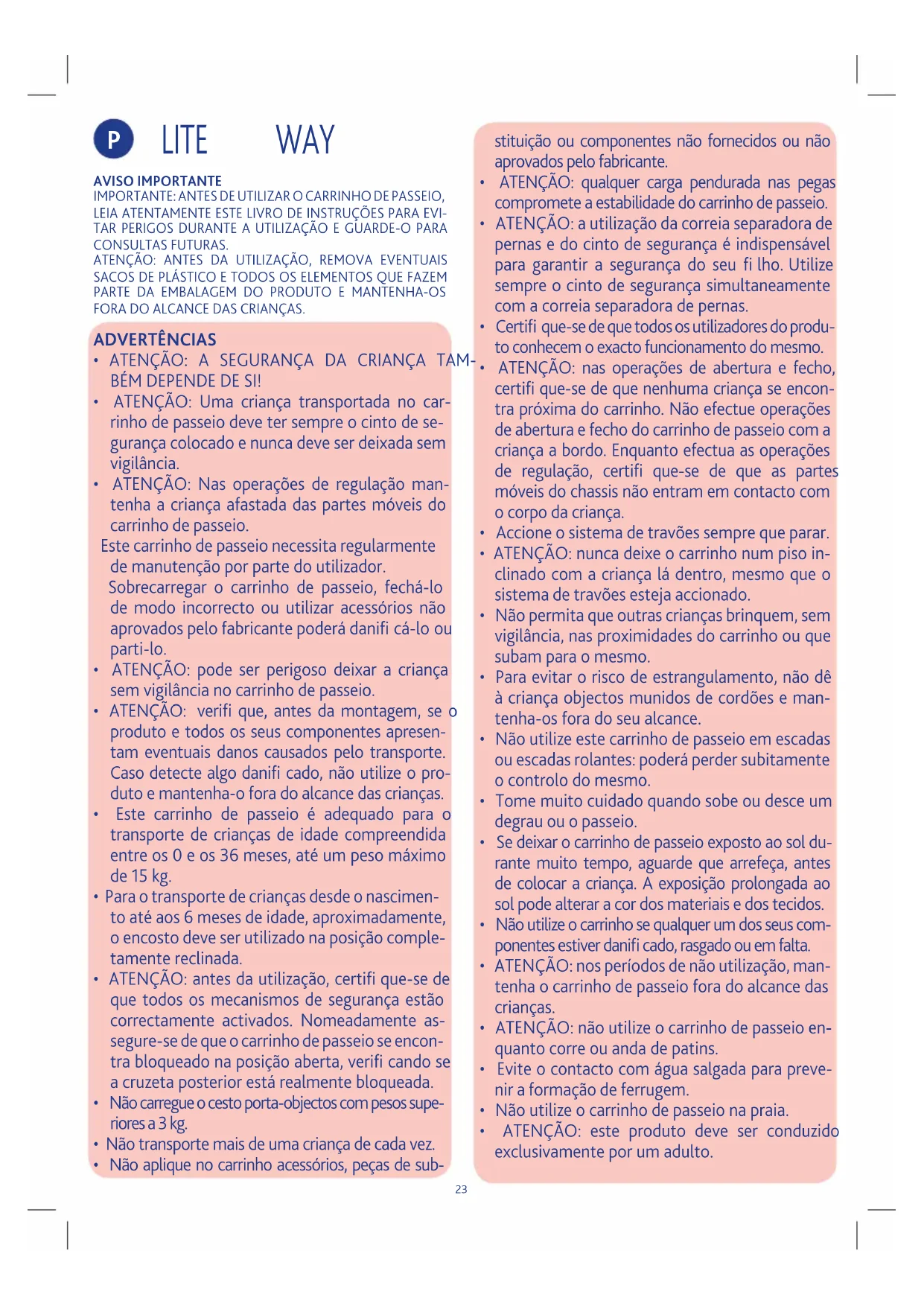 • ATENÇÃO: não utilize o carrinho de passeio en-