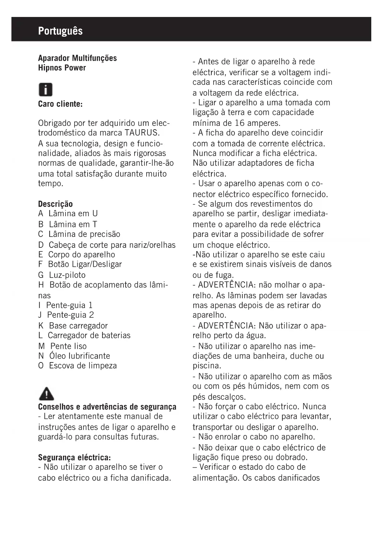 Hipnos Power - Aparador de barba TAURUS - Manual de utilização gratuito