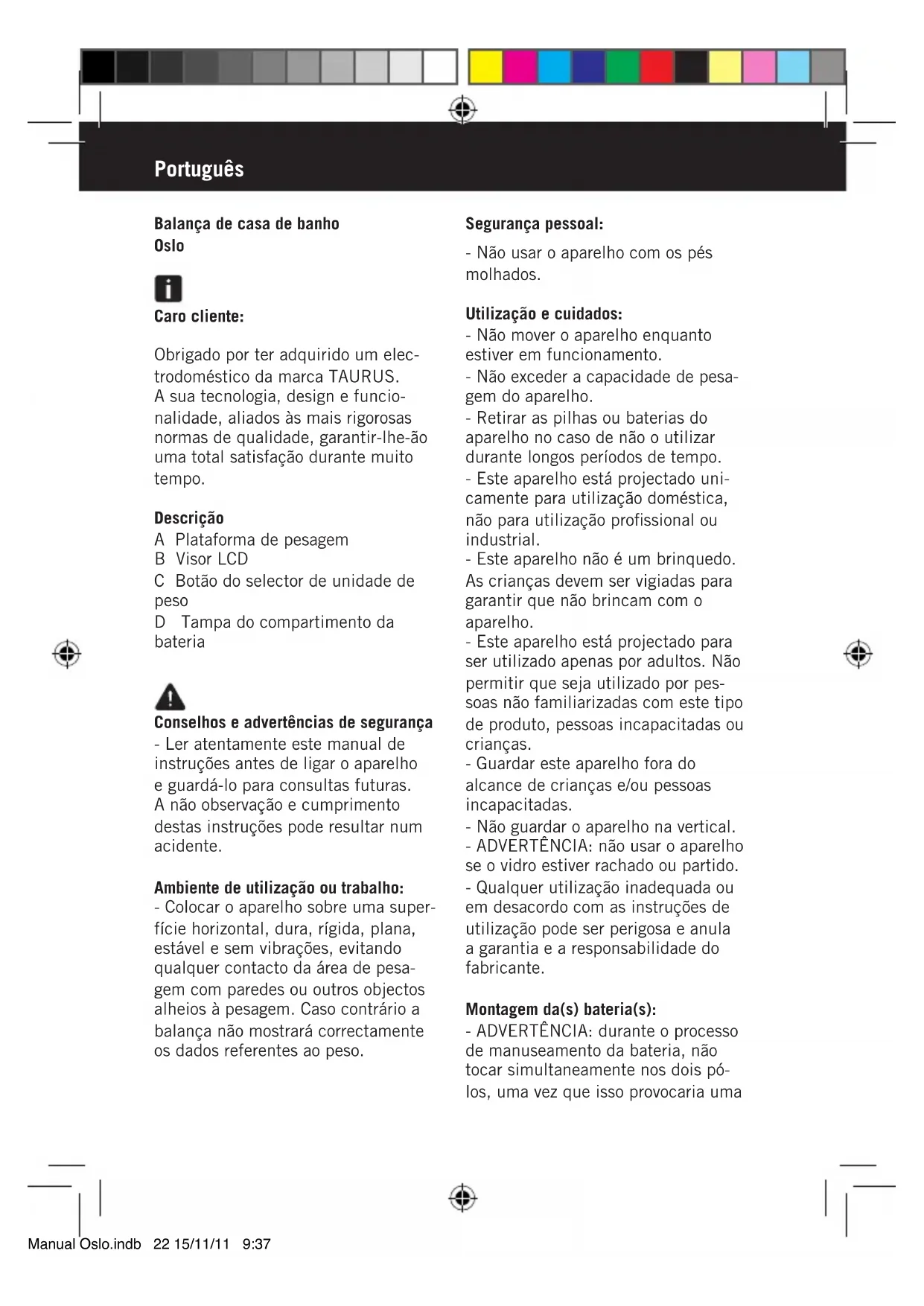 Oslo - Balanças TAURUS - Manual de utilização gratuito