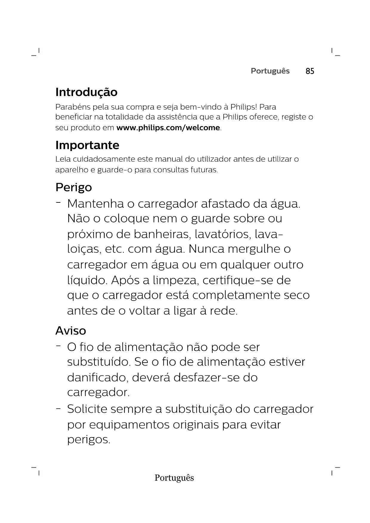 carregador não é compatível com modelos anteriores da Philips