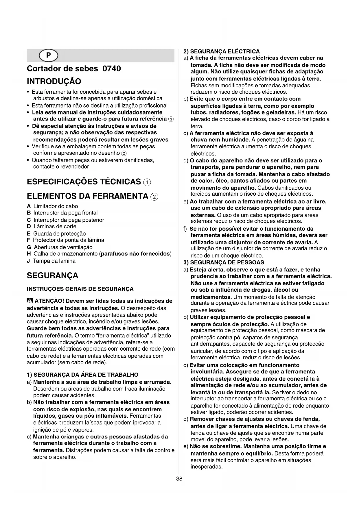 SEGURANÇA INSTRUÇÕES GERAIS DE SEGURANÇA ATENÇÃO! Devem ser lidas todas as indicações de