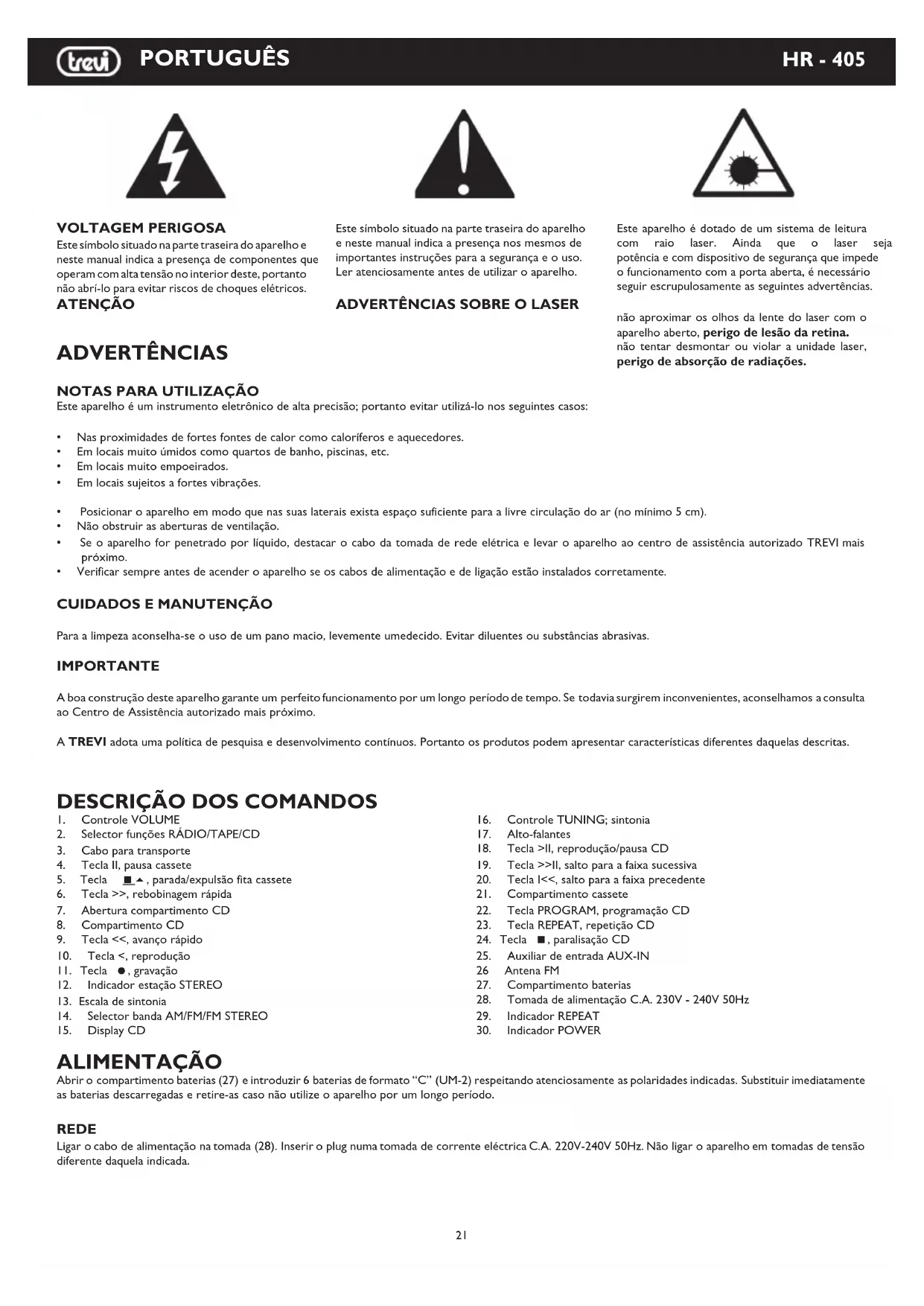 MANUAL DE UTILIZADOR HR405 Trevi