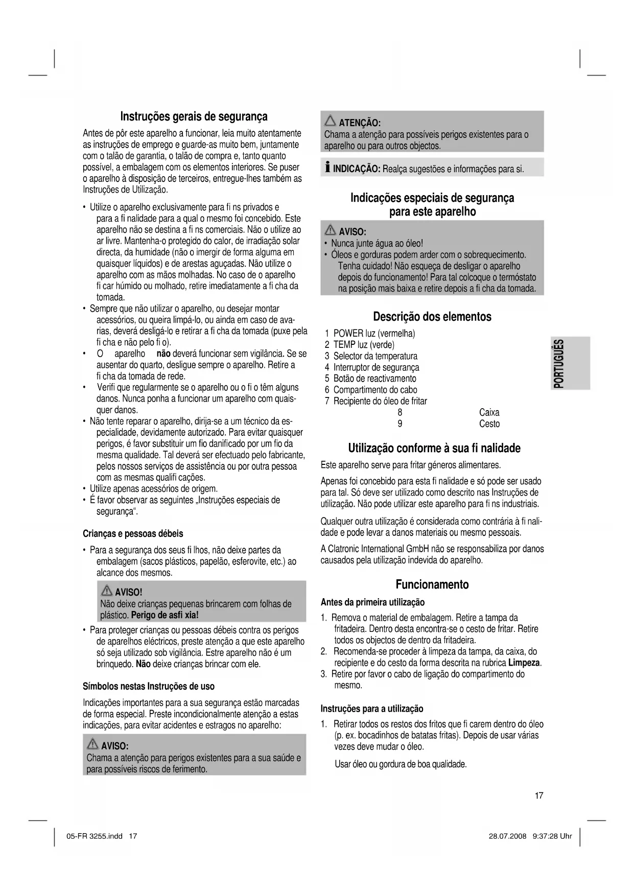 FR 3255 - Fritadeira CLATRONIC - Manual de utilização gratuito