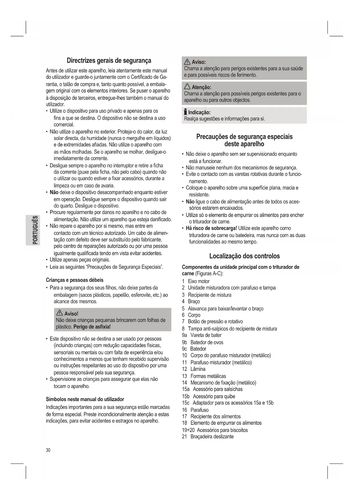 Manual do utilizador página 30