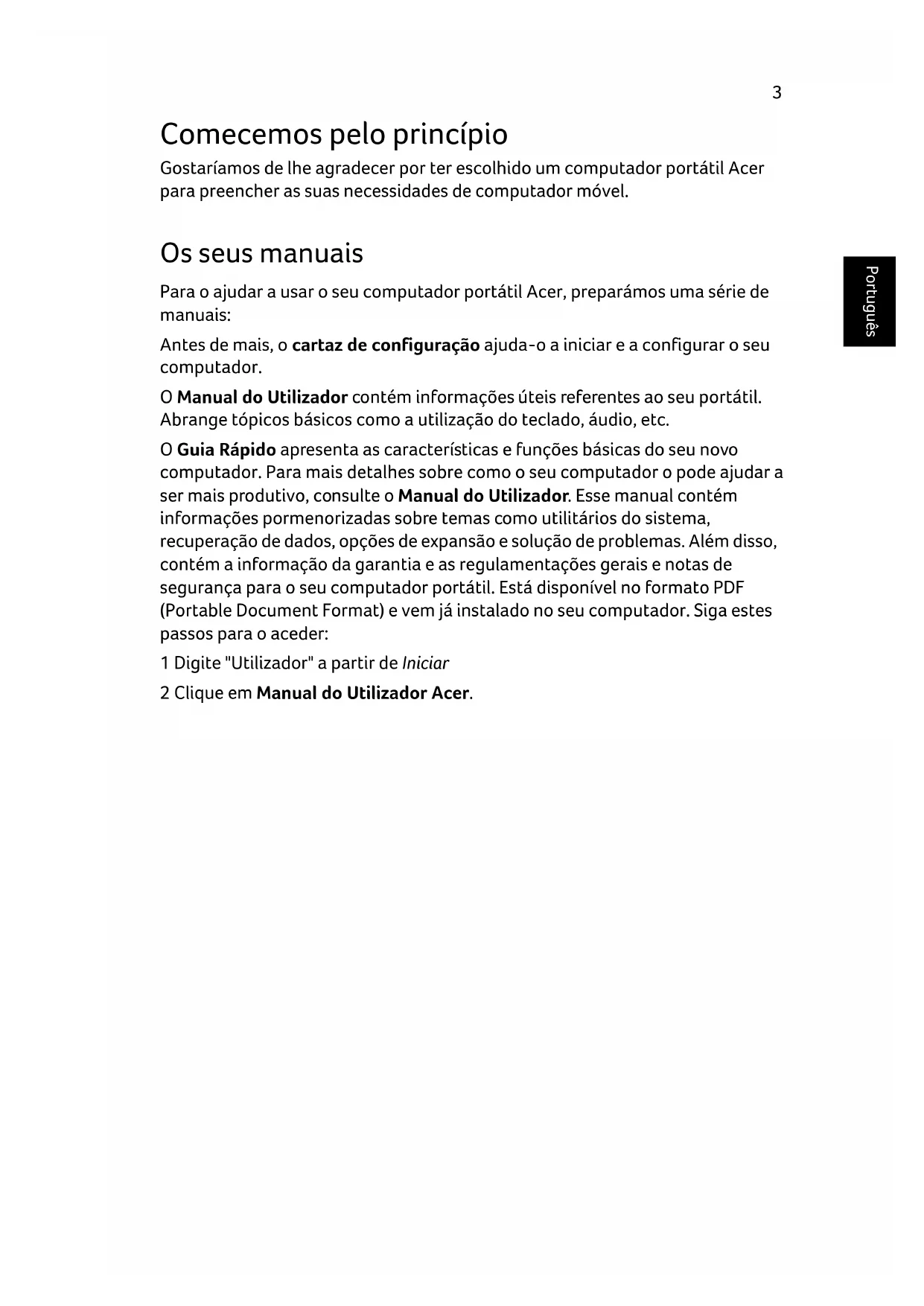 O Manual do Utilizador contém informações úteis referentes ao seu portátil.