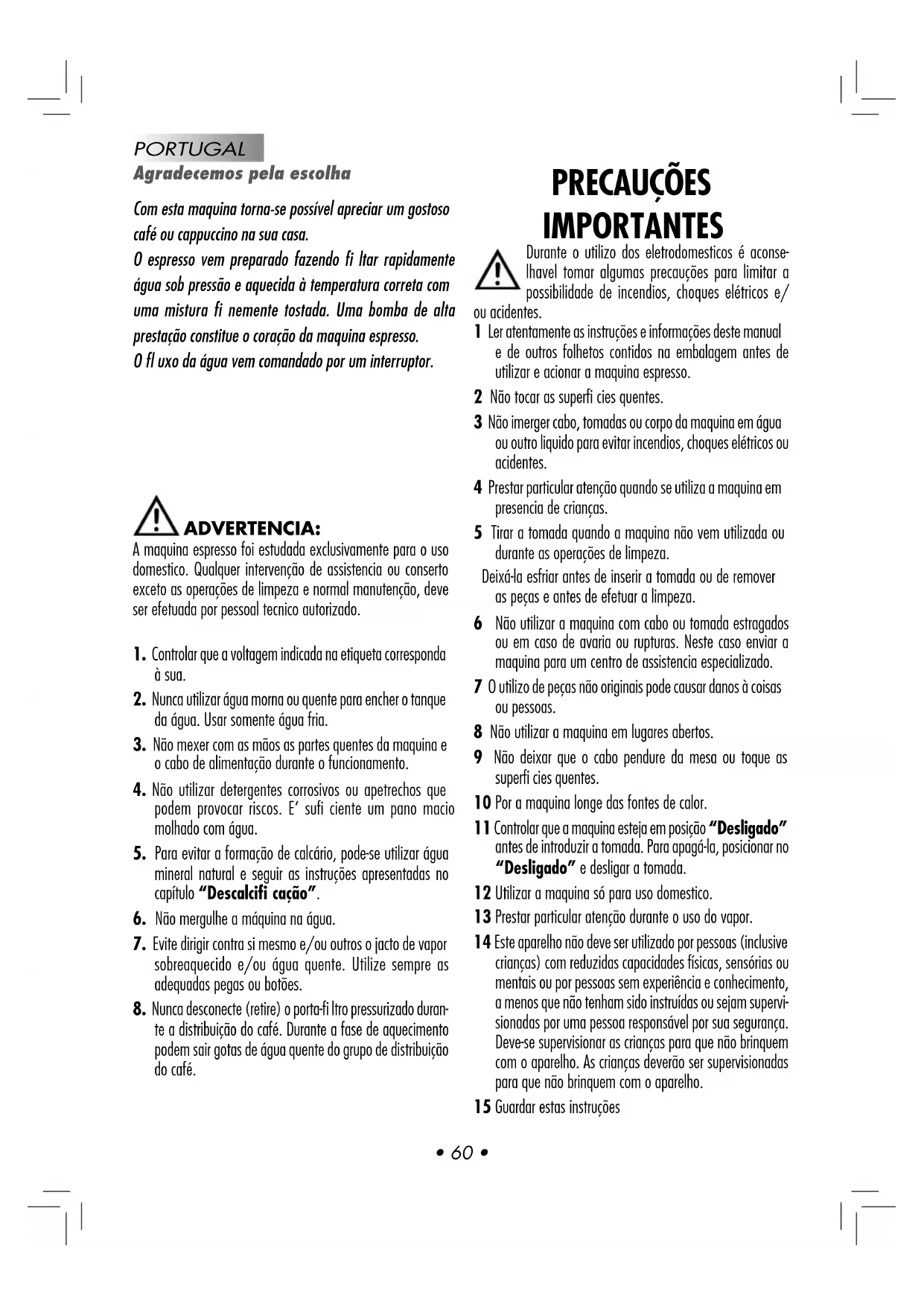 PORTUGAL PRECAUÇÕES IMPORTANTES Durante o utilizo dos eletrodomesticos é aconse-
