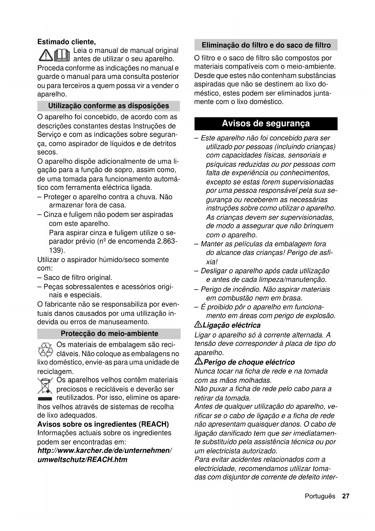 A 2534 PT - Aspirador Kärcher - Manual de utilização gratuito