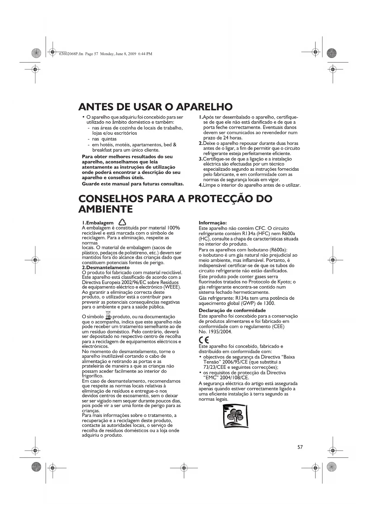 ANTES DE USAR O APARELHO CONSELHOS PARA A PROTECÇÃO DO AMBIENTE