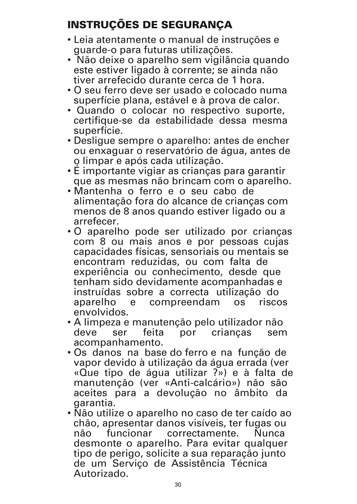 • O seu ferro deve ser usado e colocado numa
