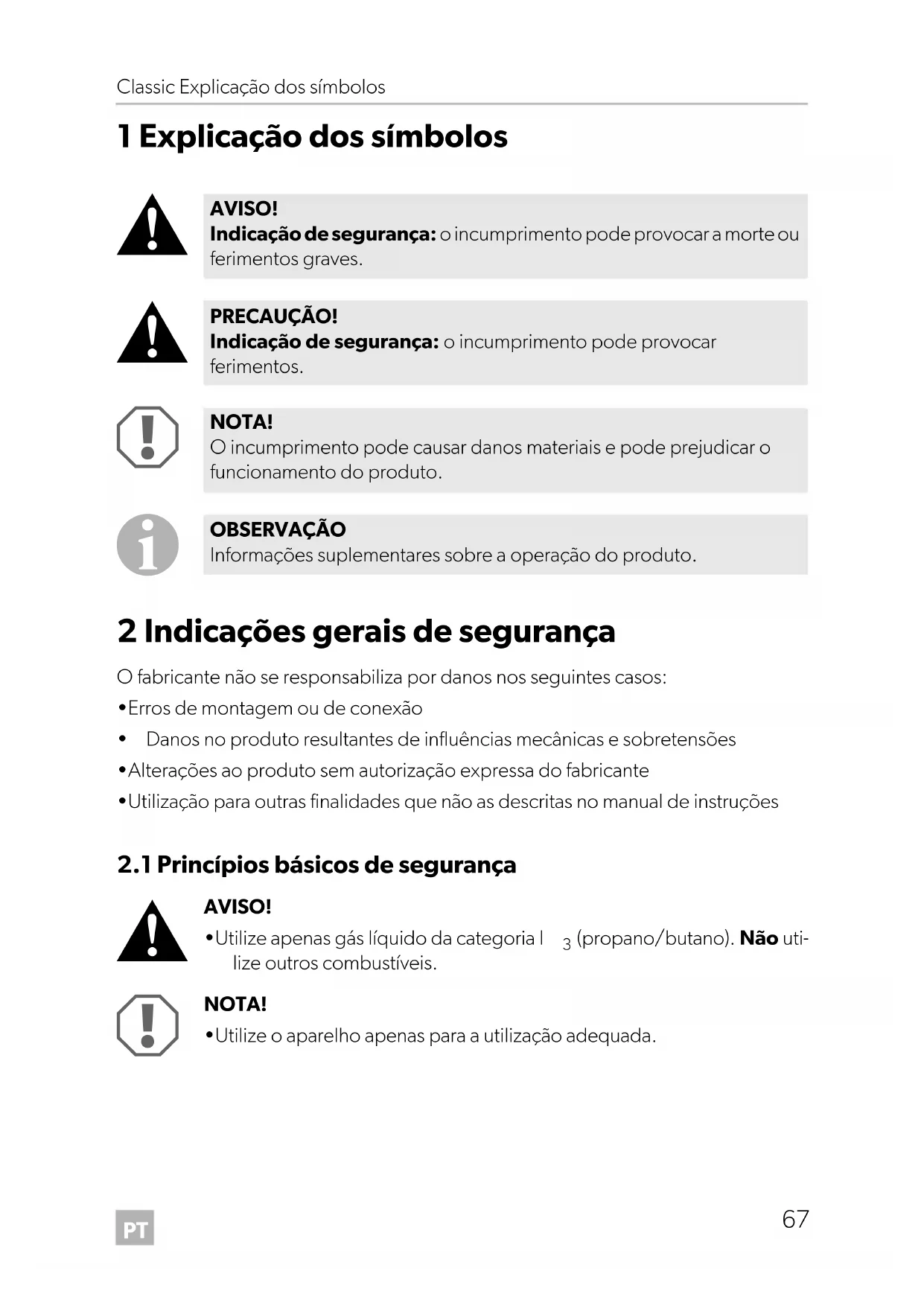 O aparelho queima gás láquido e consome oxigénio. Nautilização em espacções fechados, existe perigo de asfixia por falta de oxigénio. Utilize o aparelho exclusivamente no exterior.
